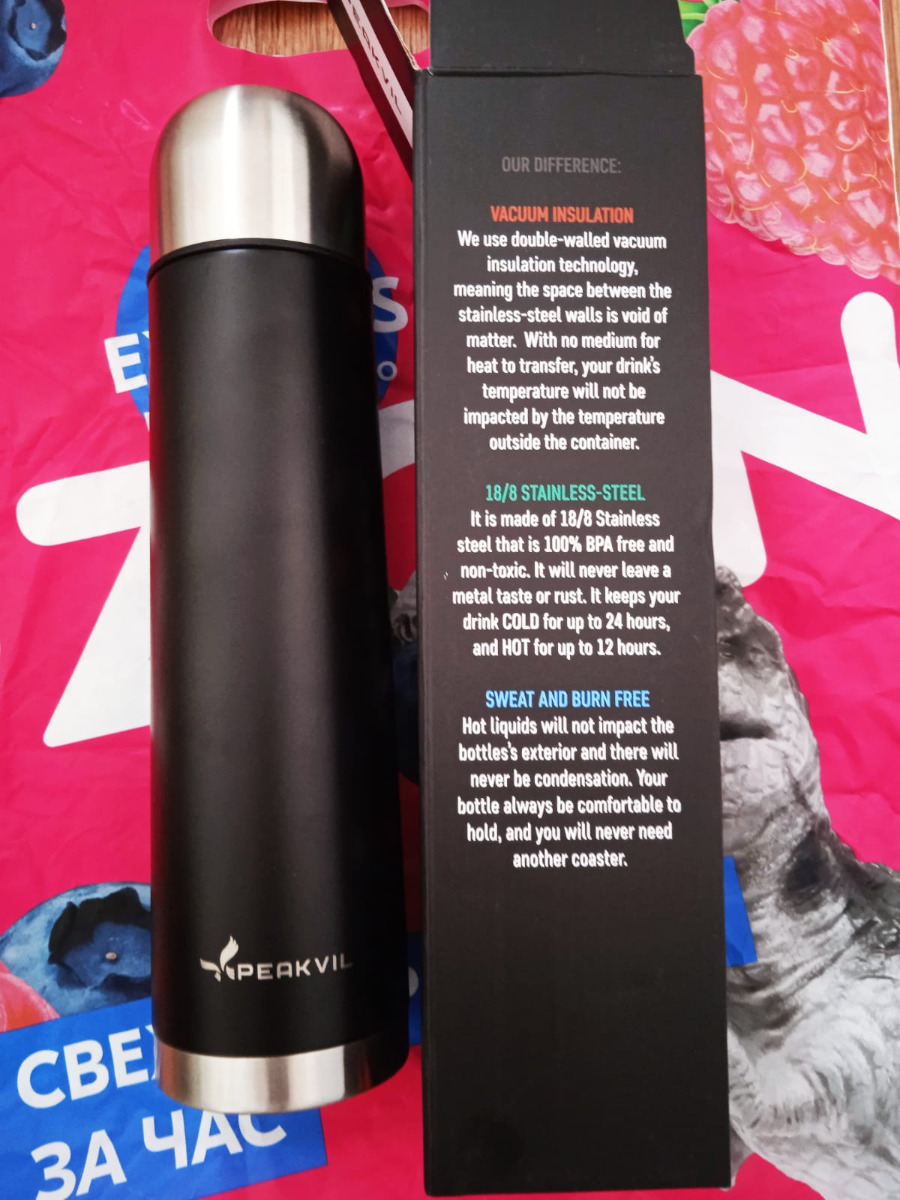 Термос 1 литр сталь для чая и кофе в дорогу кружка в комплекте