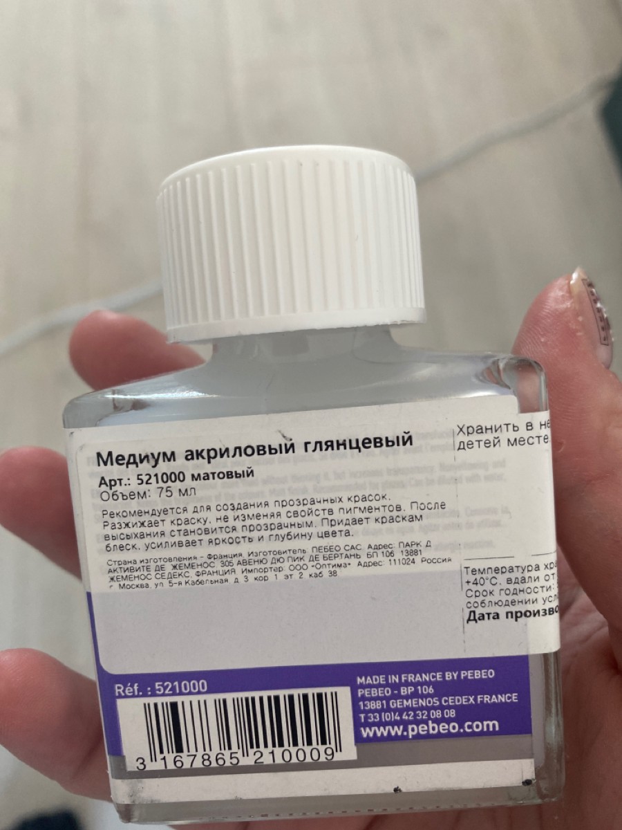 PEBEO Разбавитель медиум акриловый, разжижает краску 75 мл 521000 матовый