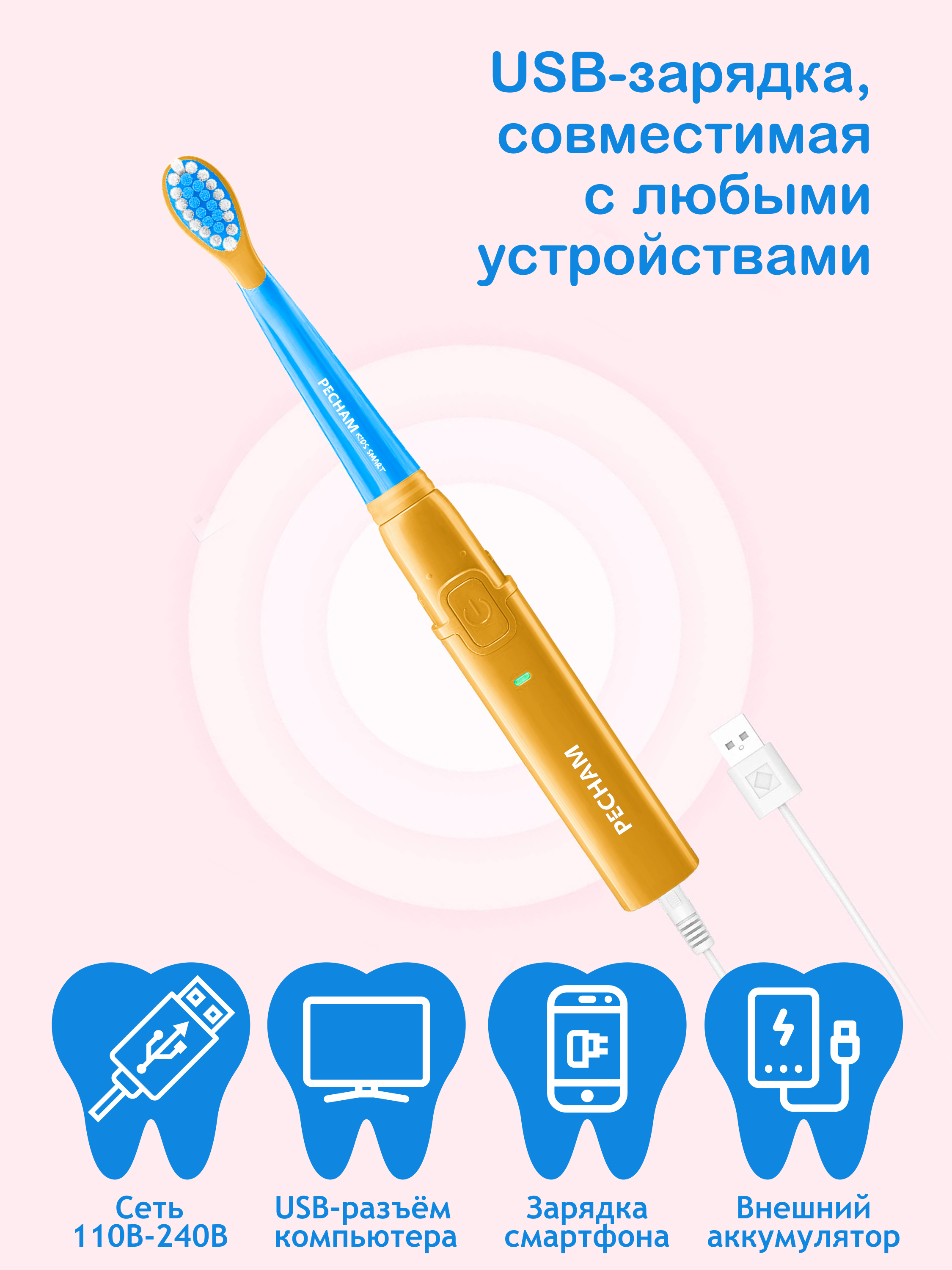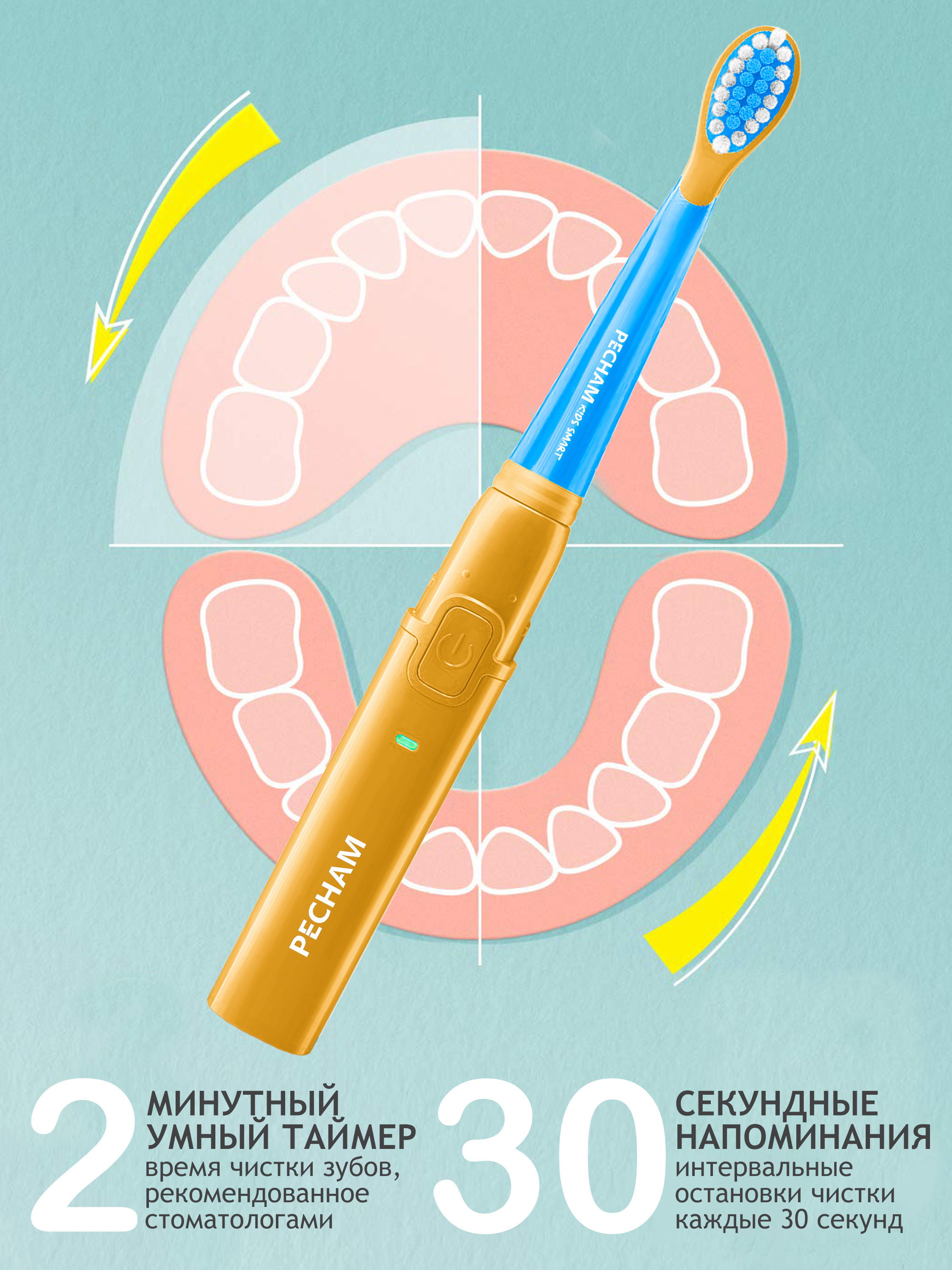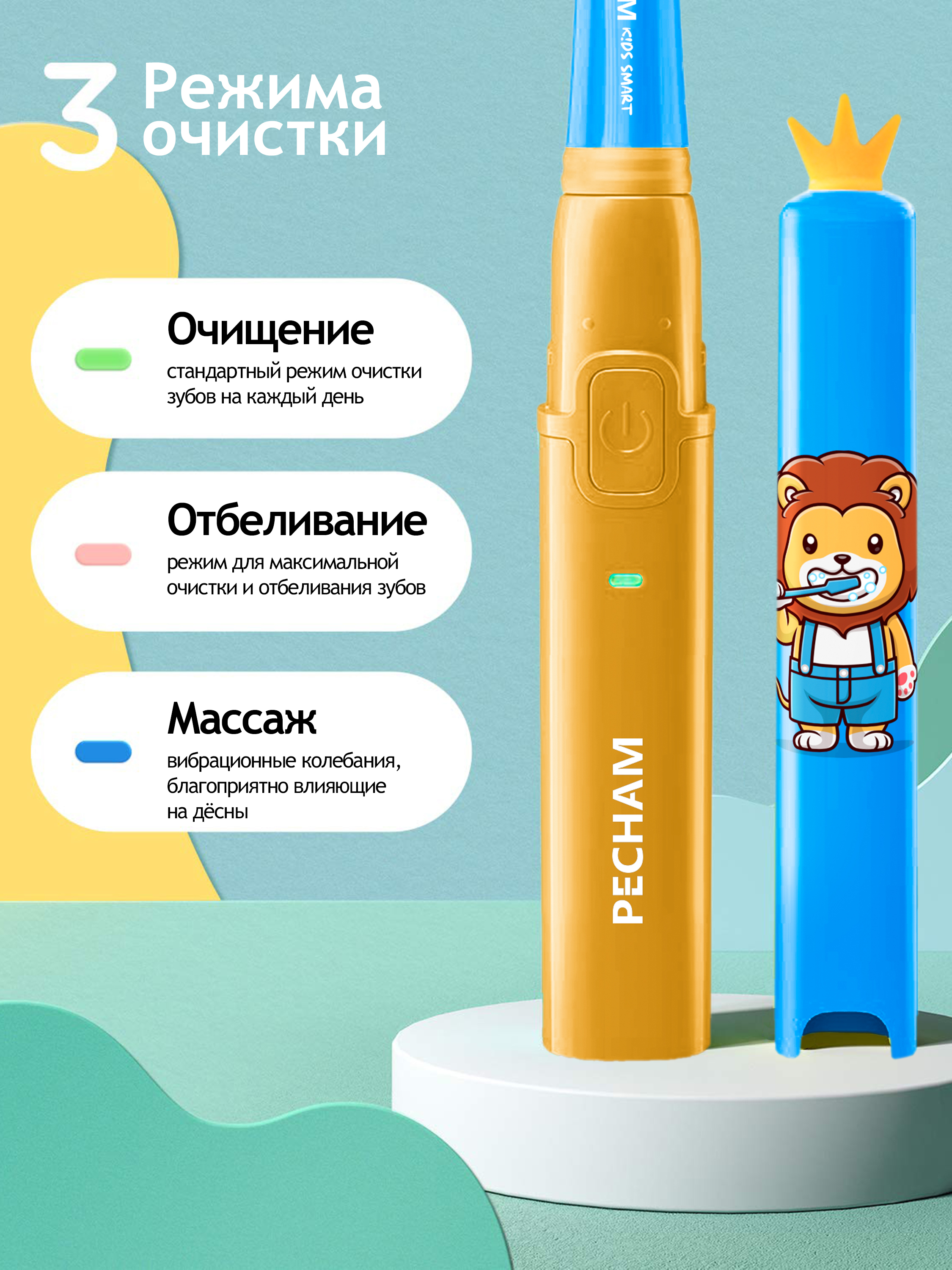 Электрическая зубная щетка PECHAM детская Kids Smart 3+, 2 насадки, Electric toothbrush , голубой