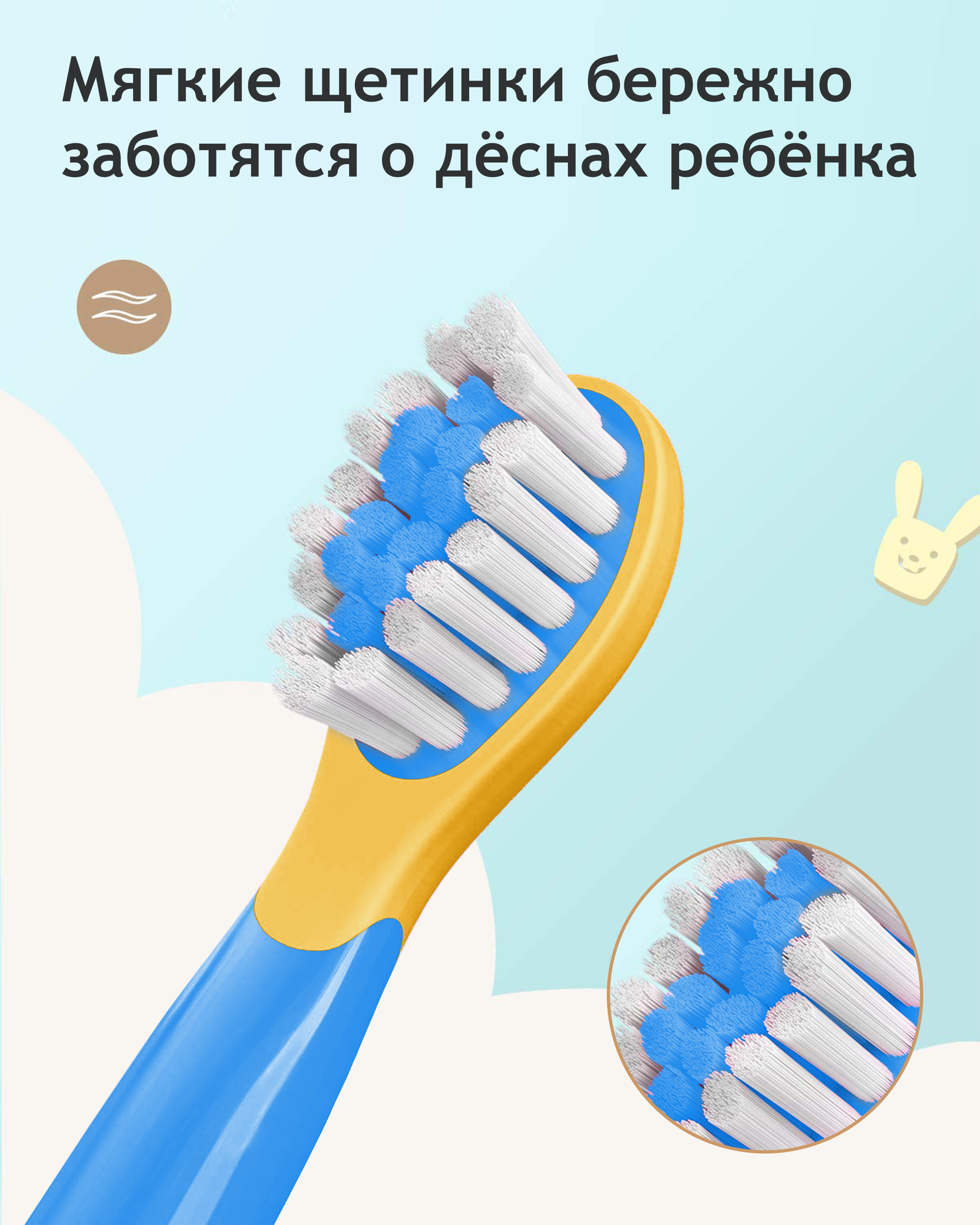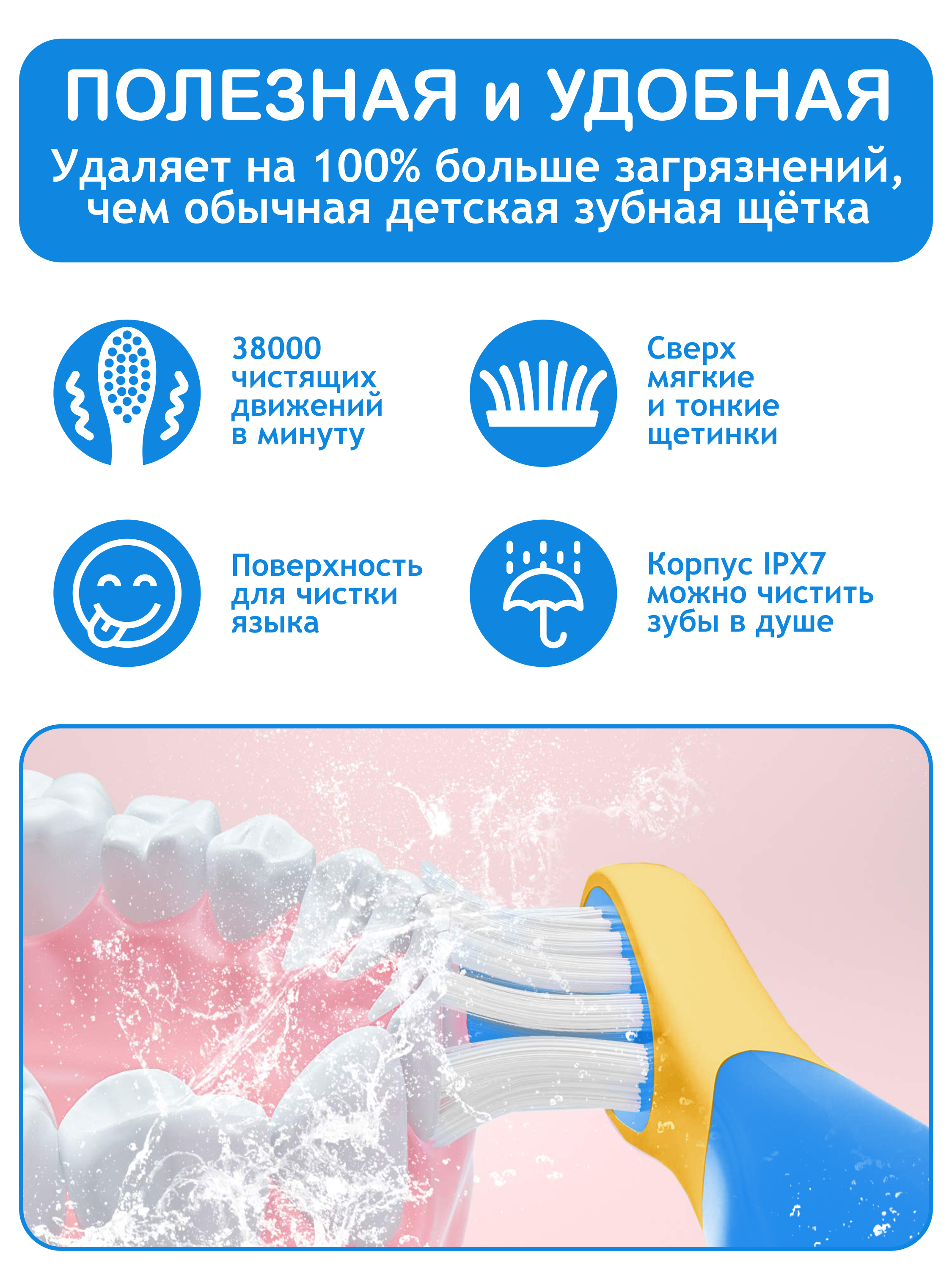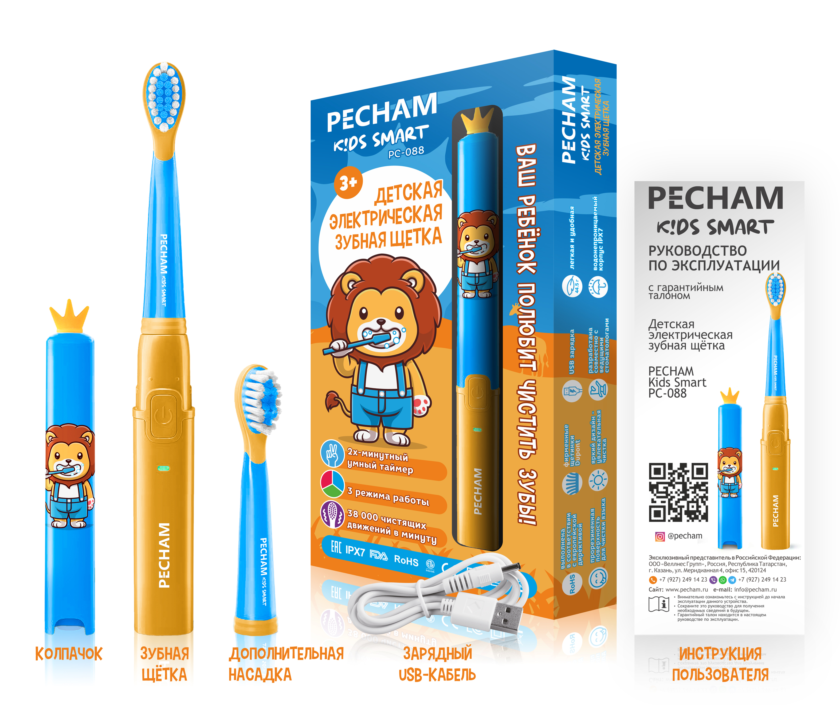 Электрическая зубная щетка PECHAM детская Kids Smart 3+, 2 насадки, Electric toothbrush , голубой