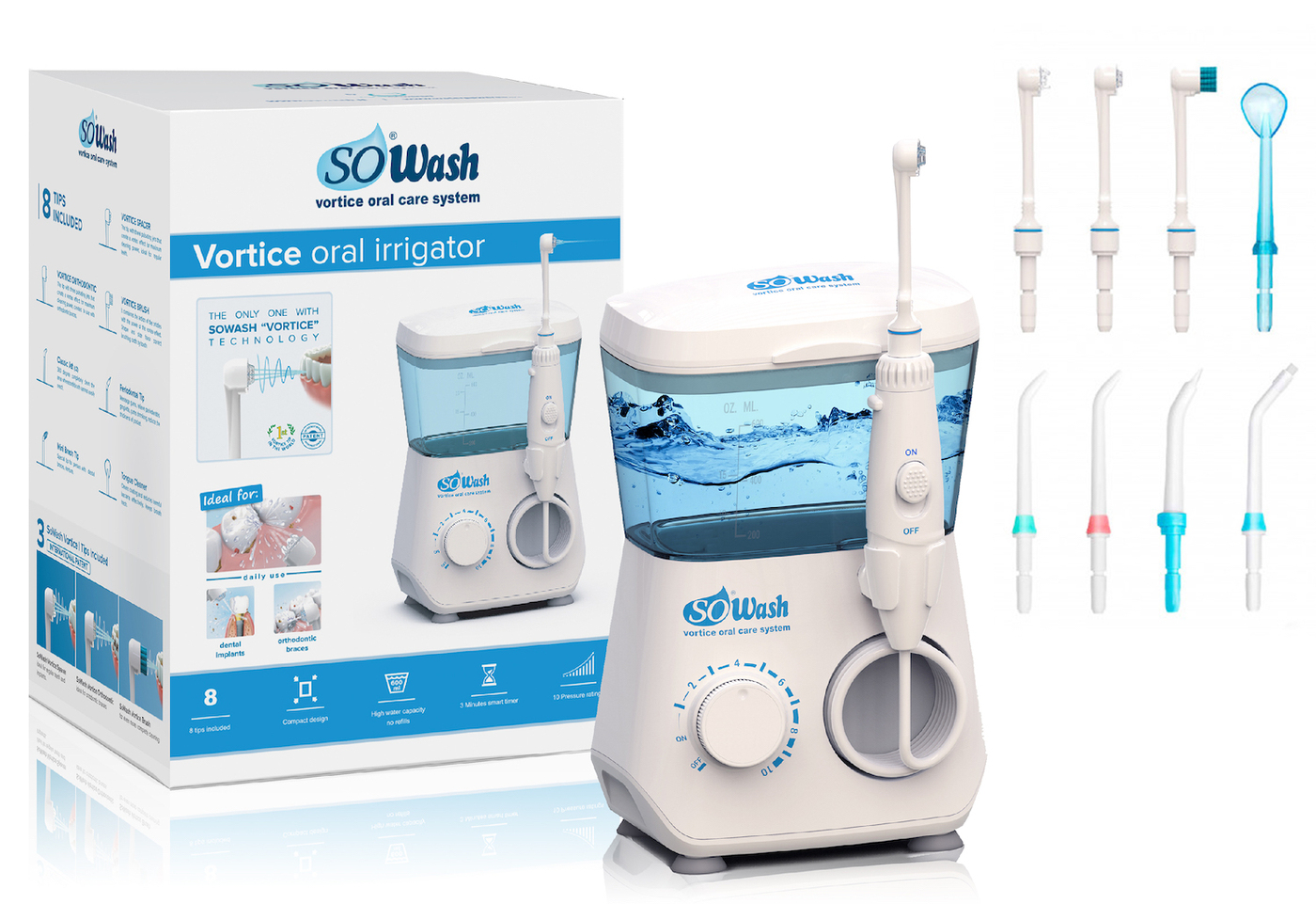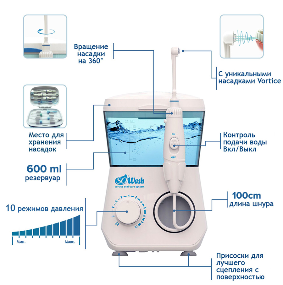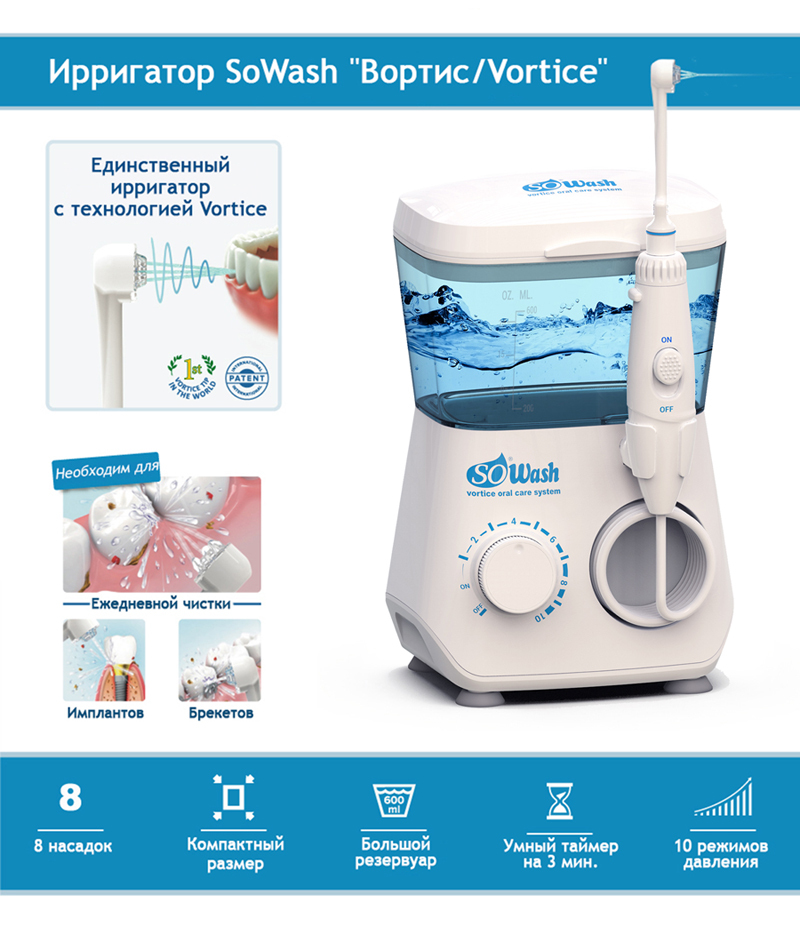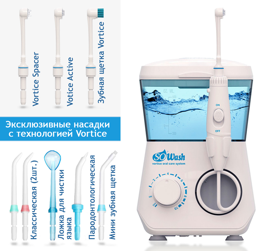 Ирригатор для полости рта SoWash "Вортис / Vortice", стационарный, 8 насадок, 600 мл, Oral irrigator