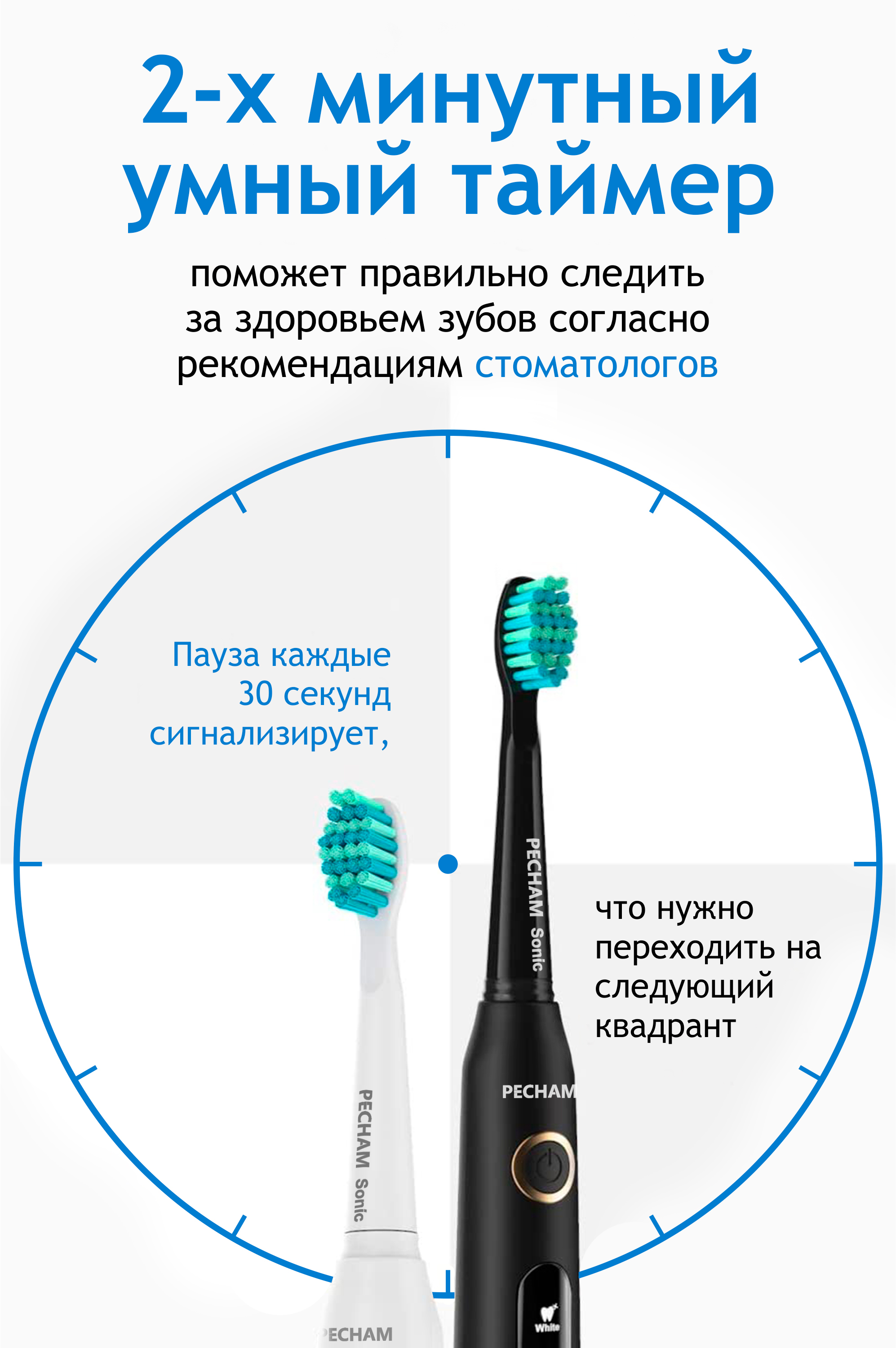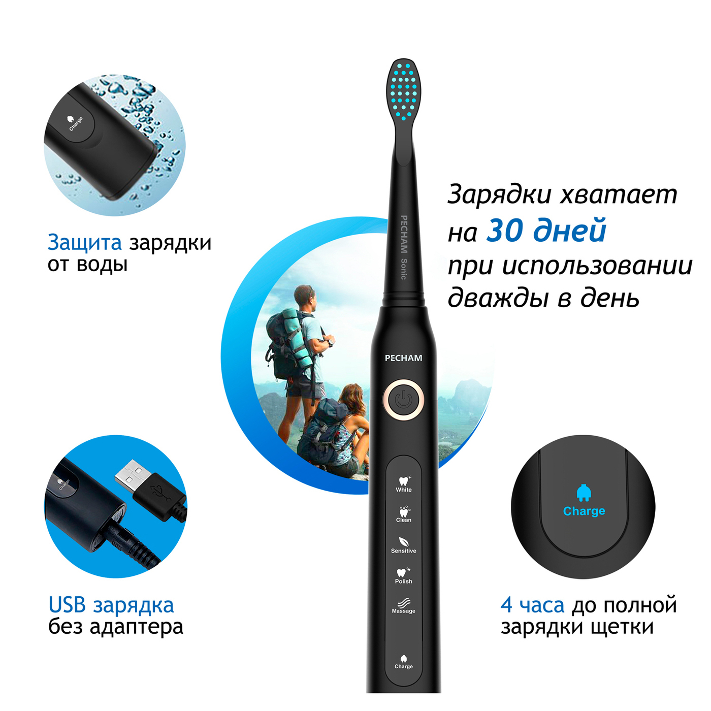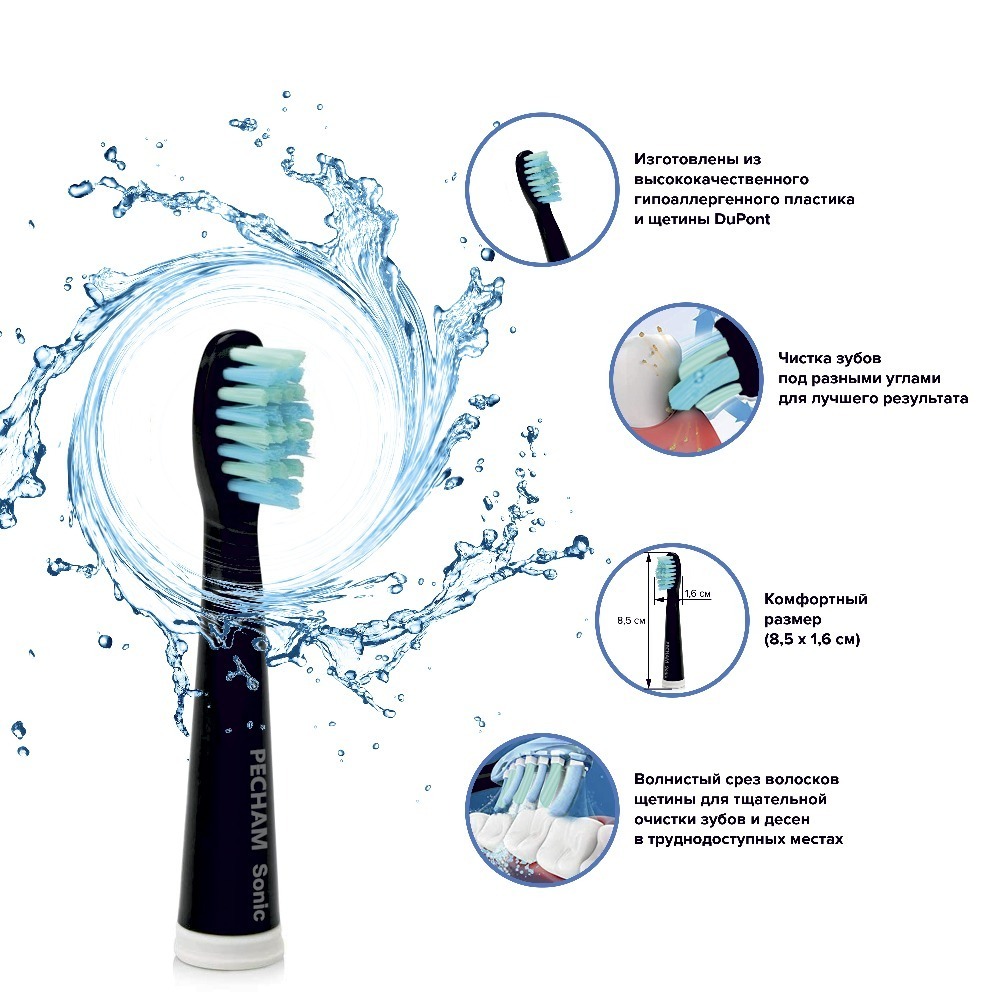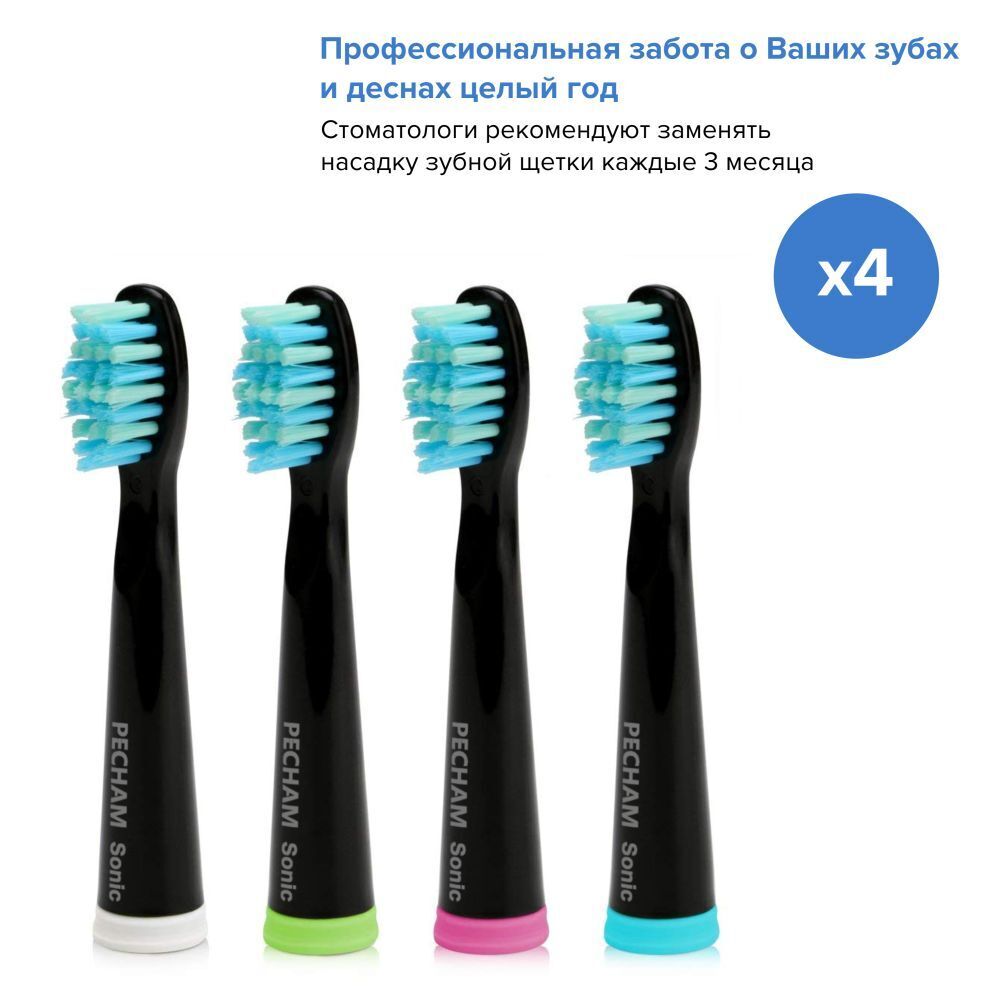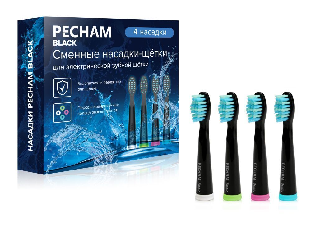 Сменные насадки для электрической зубной щетки PECHAM Sonic Black, 4 шт.