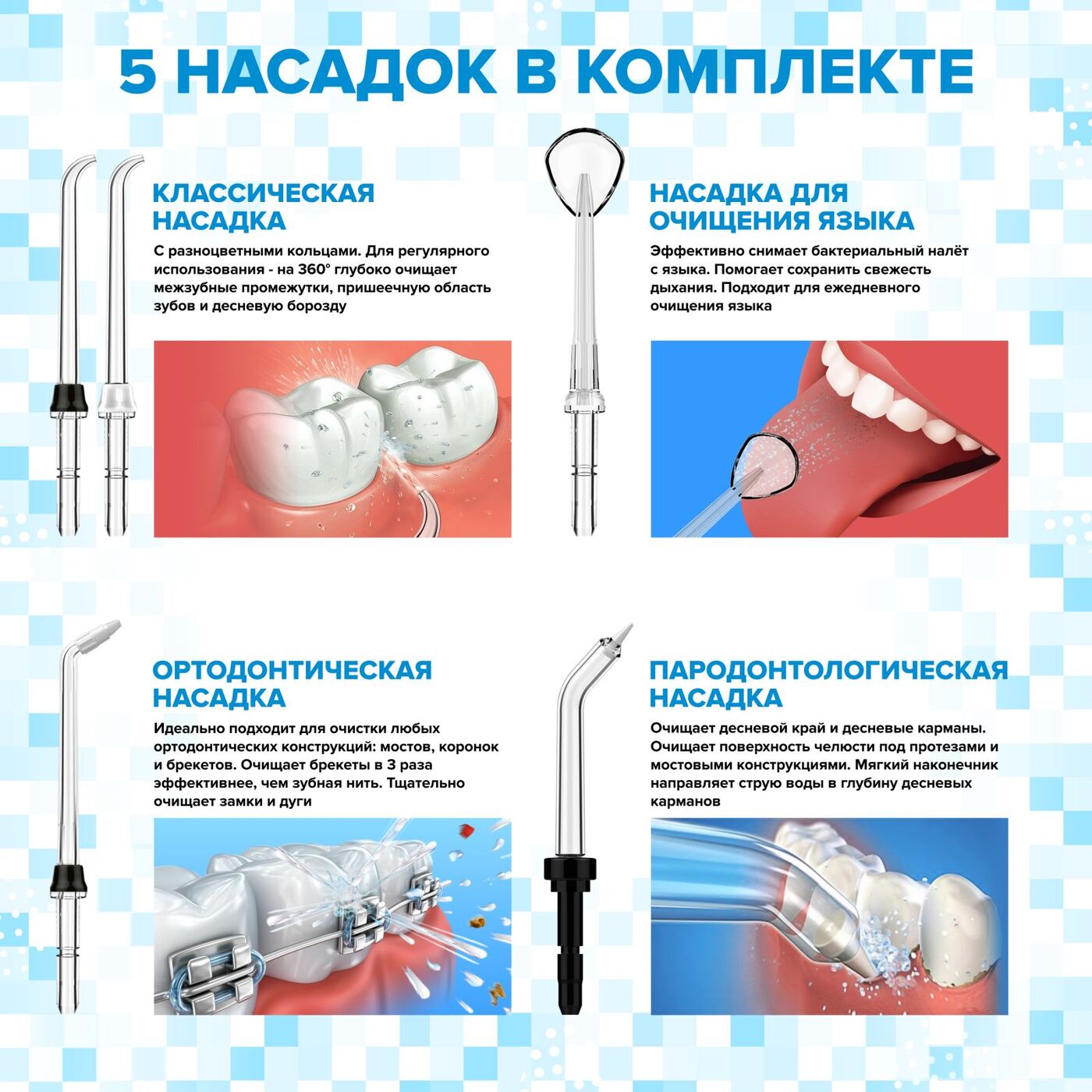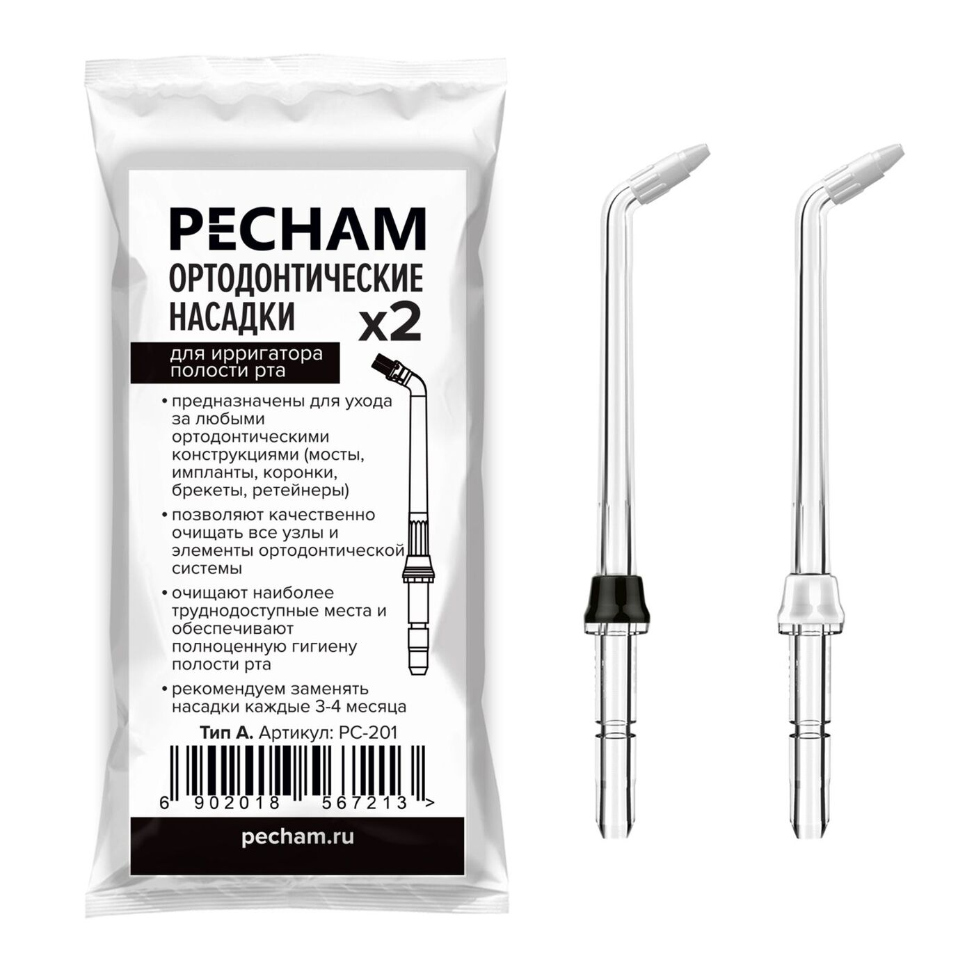 Насадки для ирригатора полости рта PECHAM, ОРТОДОНТИЧЕСКИЕ, ТИП А