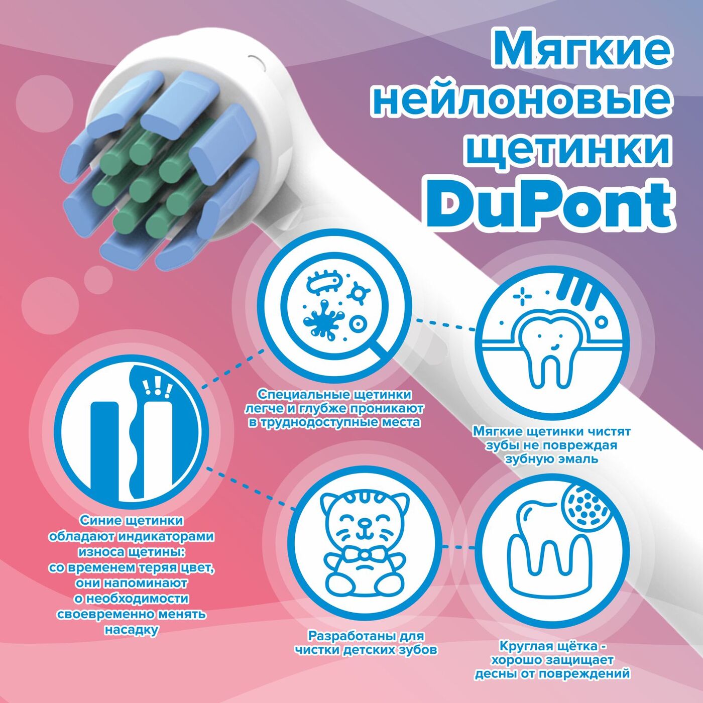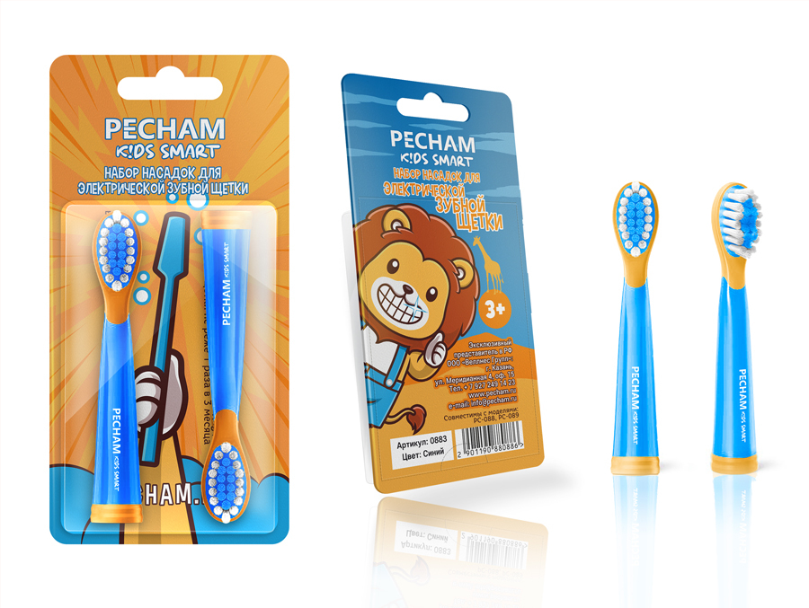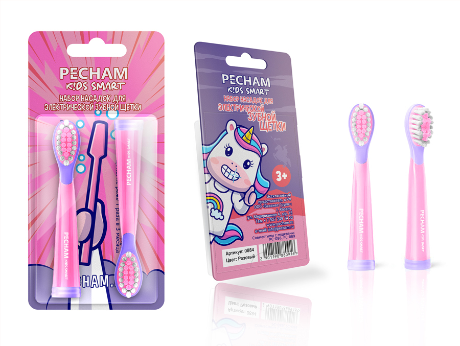 Сменные насадки для детской электрической зубной щетки PECHAM Kids Smart, 2 шт.