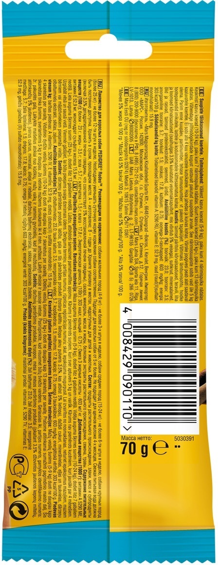 Лакомство для собак Pedigree Rodeo, 1 пачка по 70 г