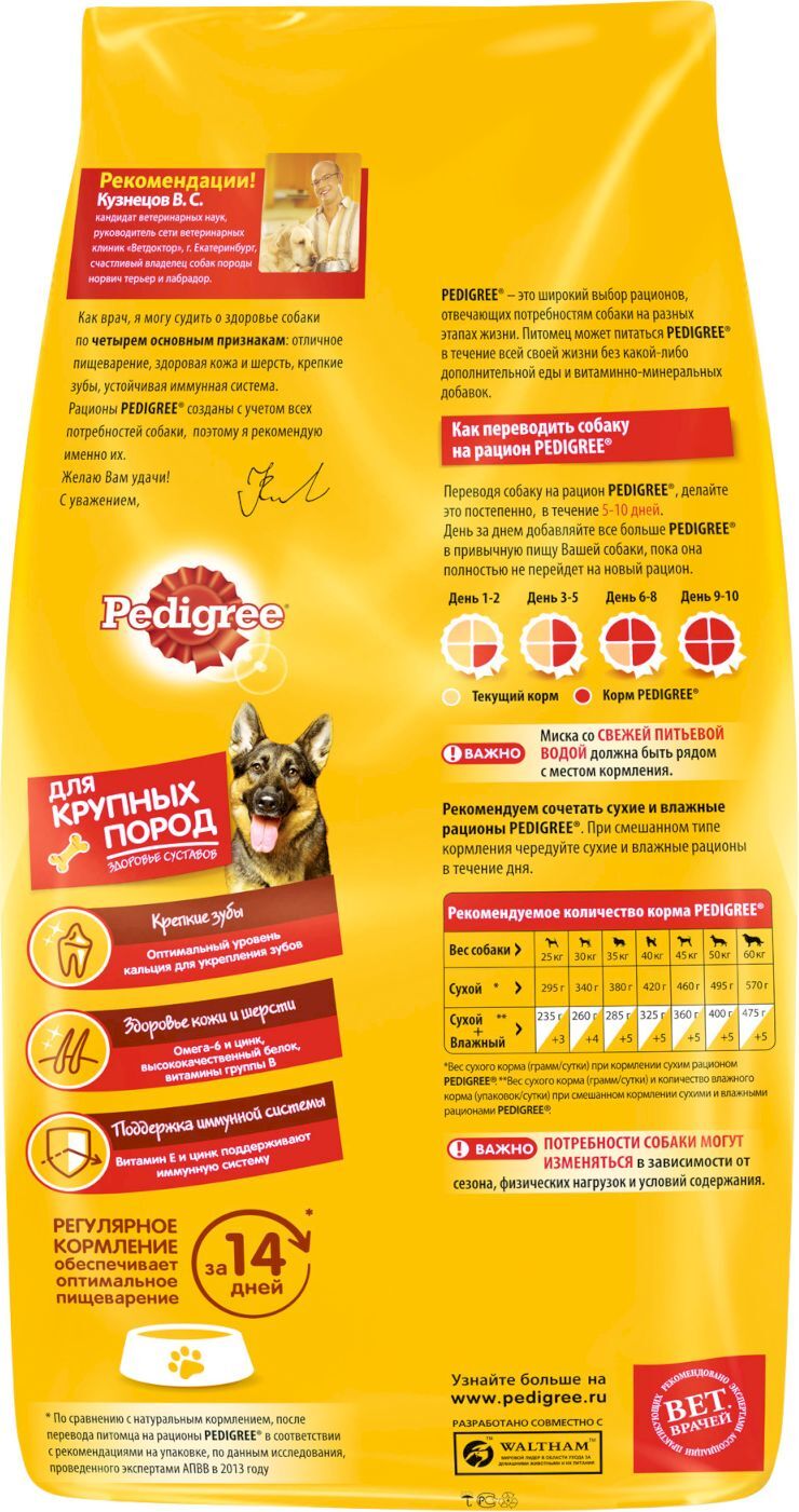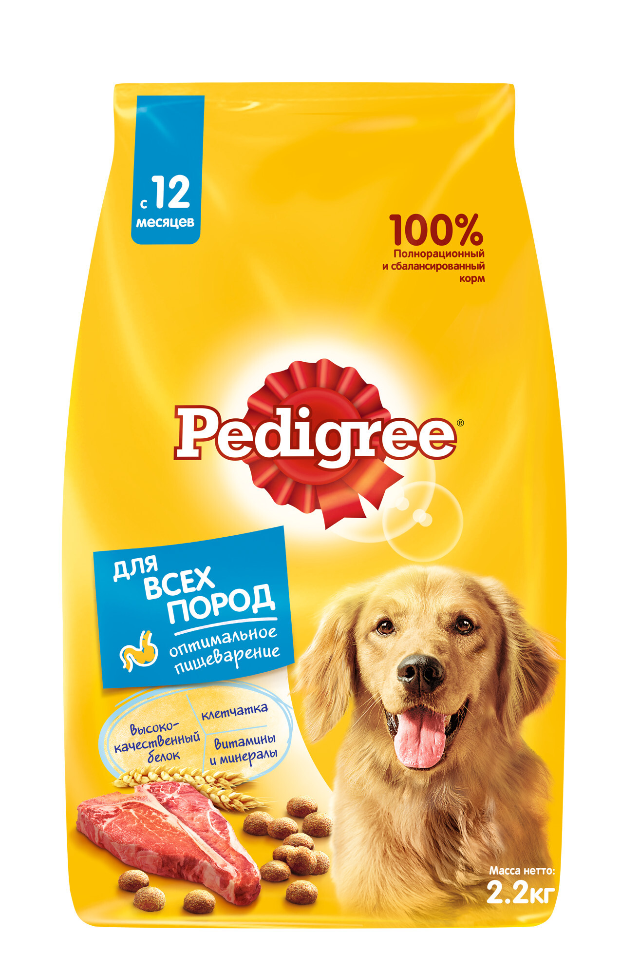 Корм сухой ""Pedigree"" для взрослых собак всех пород, с говядиной, 2,2 кг
