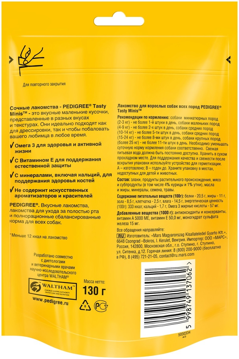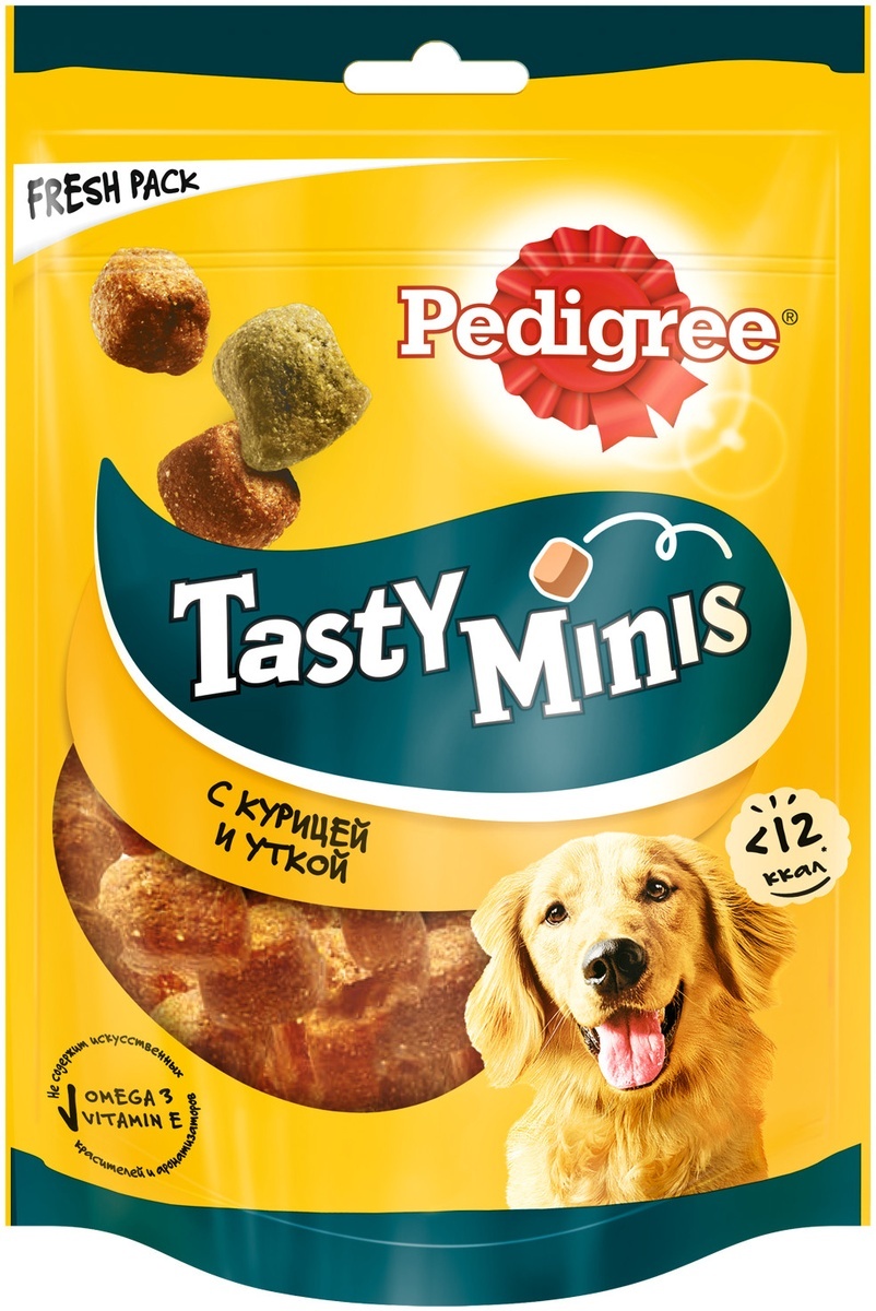 Лакомство Pedigree Tasty Minis, для взрослых собак, с курицей и уткой, 6 шт по 130 г