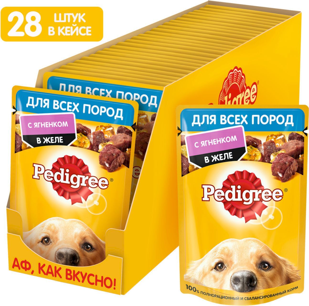 Влажный корм для собак всех пород Pedigree, с ягненком кусочки в желе, 28 х 85 г