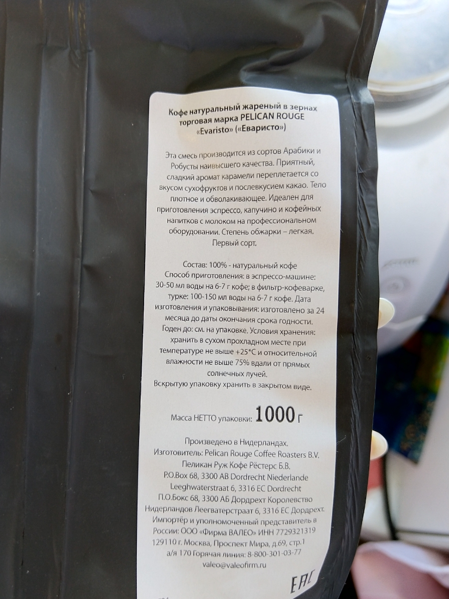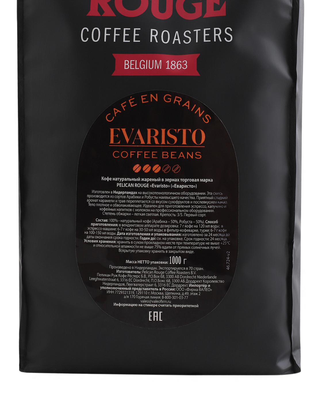 Кофе в зернах PELICAN ROUGE "EVARISTO", набор из 2 шт. по 1 кг