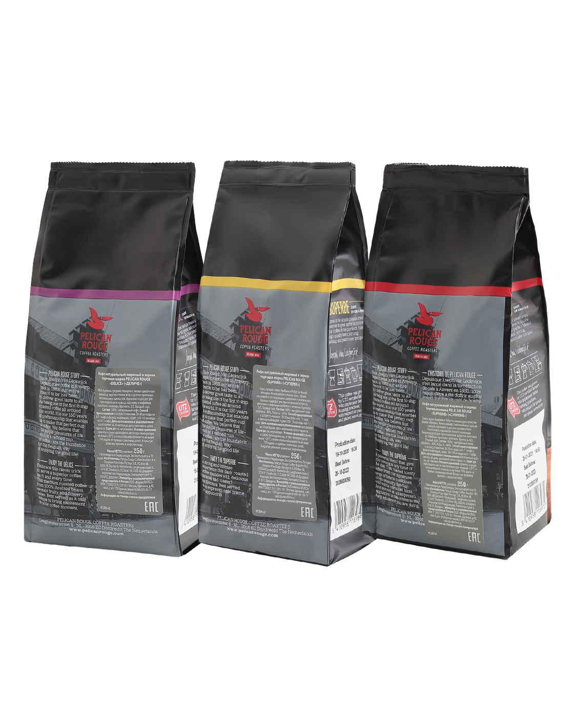 Кофе в зернах PELICAN ROUGE "DELICE","SUPERBE","SUPREME", набор из 3 шт. по 250 г
