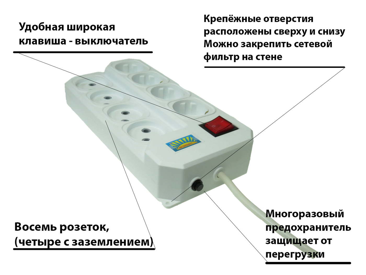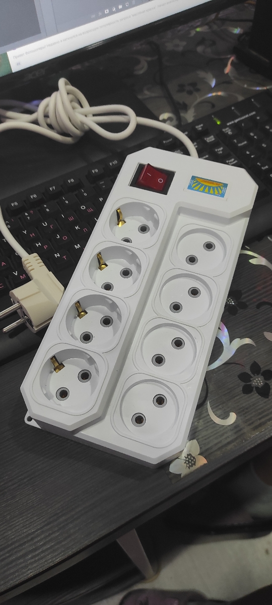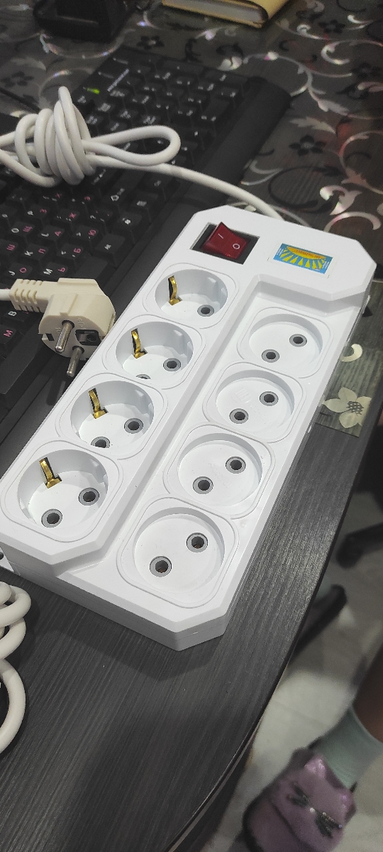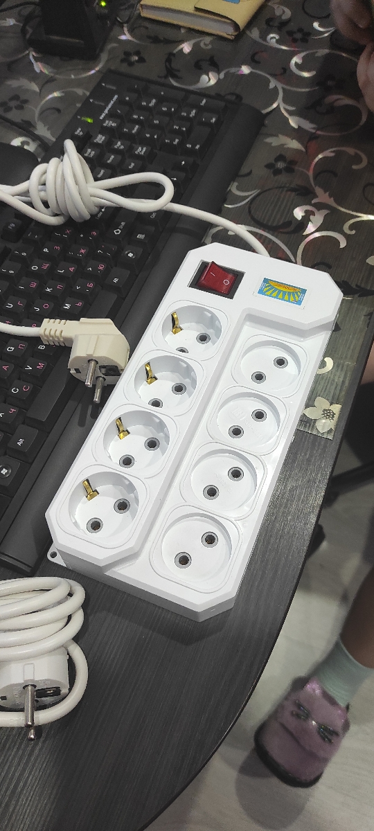 Удлинитель сетевой с заземлением, 5 гнезд с переключателем, шнур ПВС 3х0,75, 7 м