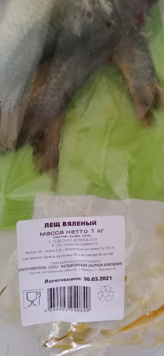Лещ вяленый Астраханский холодного копчения 1000 гр.