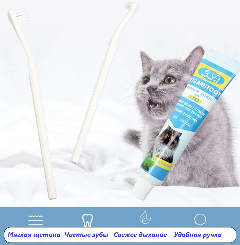 Зубная паста для КОШЕК КОТОВ и КОТЯТ НАБОР 3 ПРЕДМЕТА Pet6