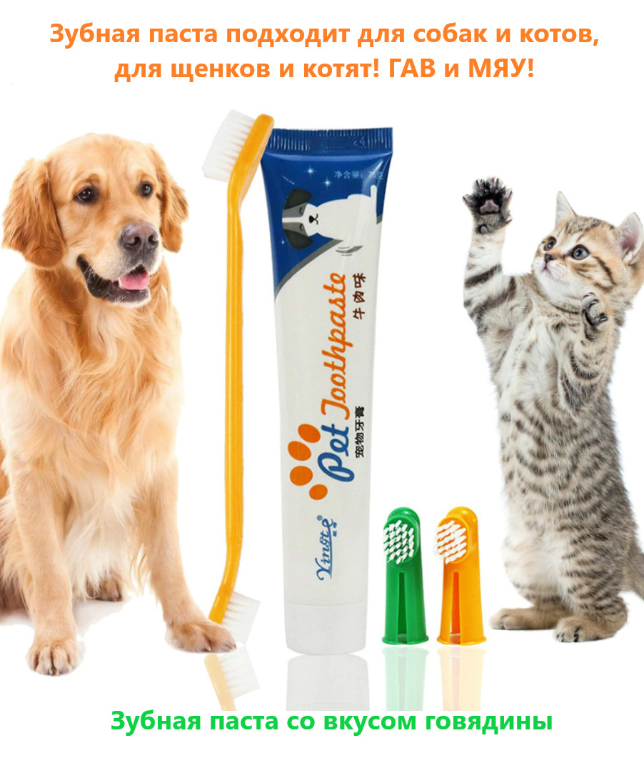 Зубная паста для Собак и Котов для Щенков и Котят НАБОР 4 предмета Pet2