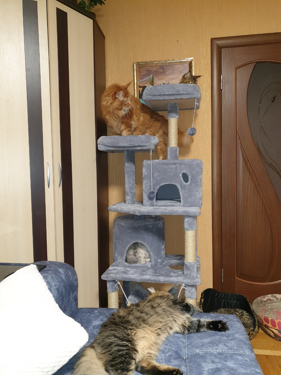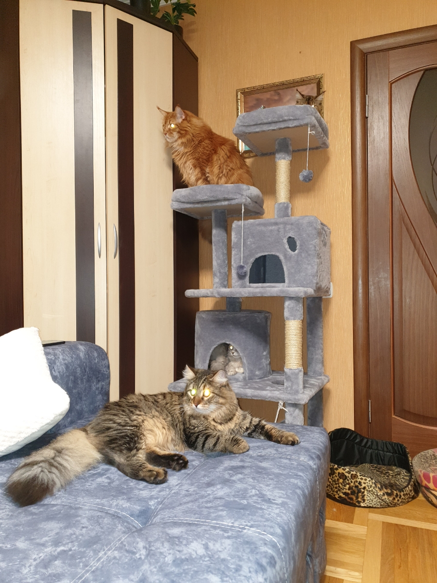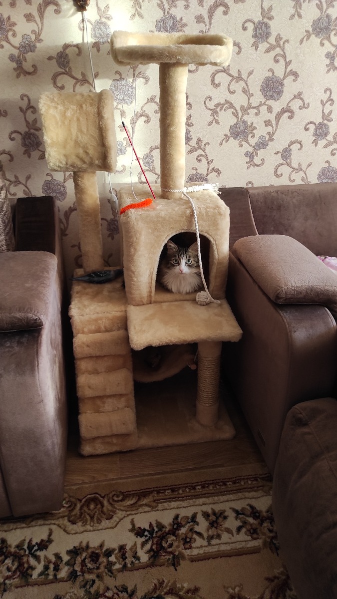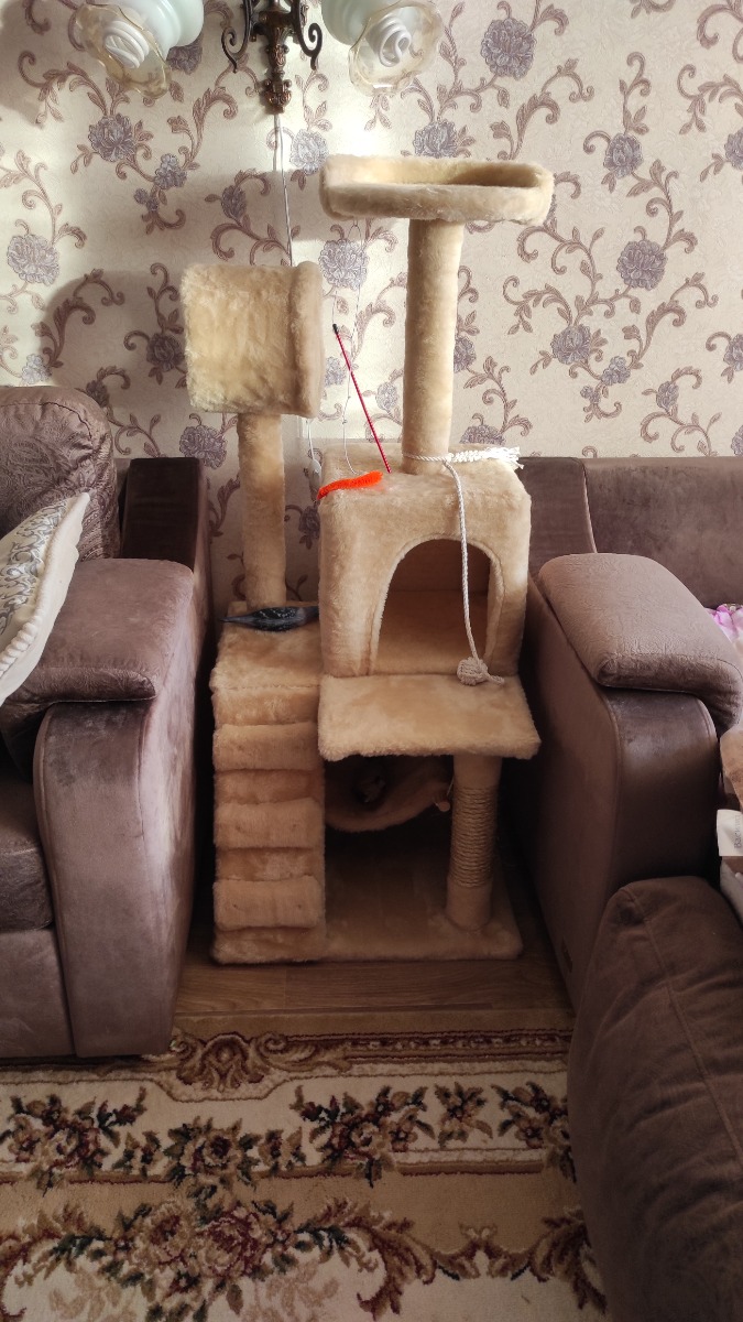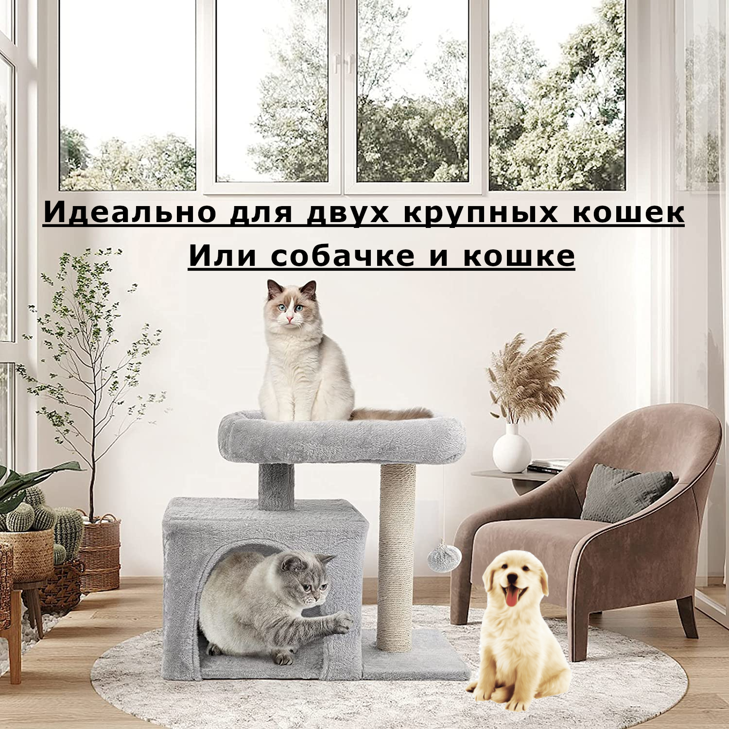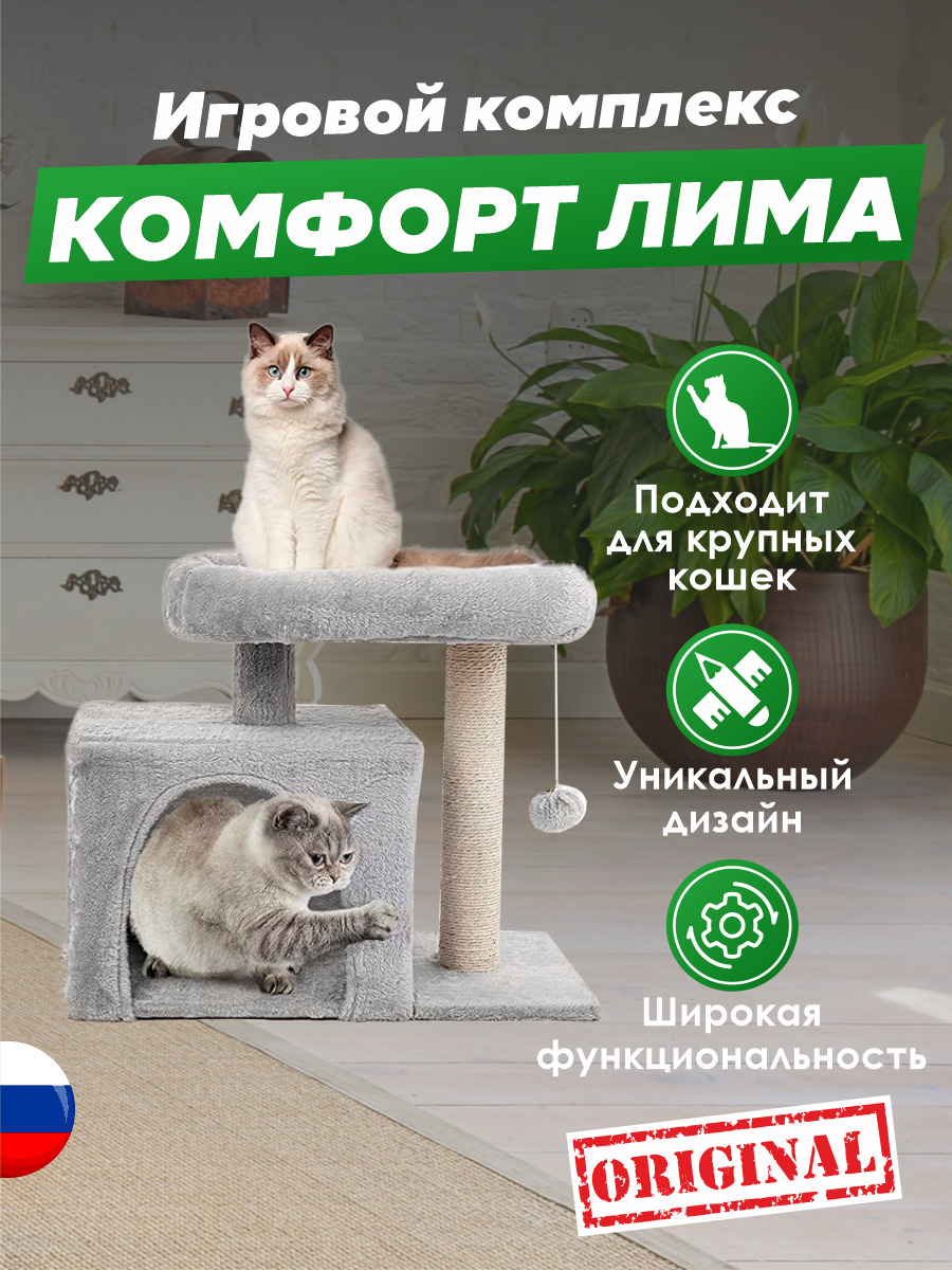 Домик для кошки с когтеточкой, "Пума", круглый лежак, высокая сизалевая когтеточка, игровой комплекс
