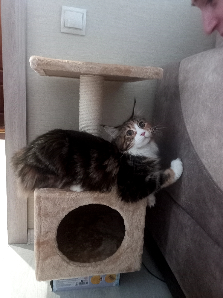 Когтеточка-домик Pet Choice, 30х30х57 см, темно-серый / Когтеточка столбик с лежанкой