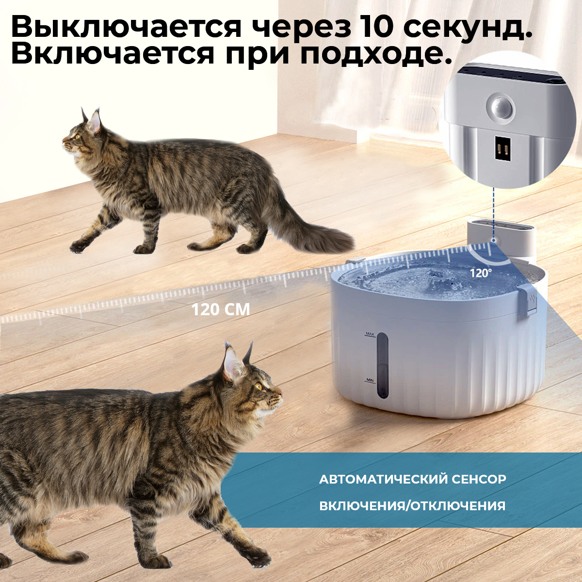 Поилка для кошек автоматическая с датчиком движения, без проводов и розеток.