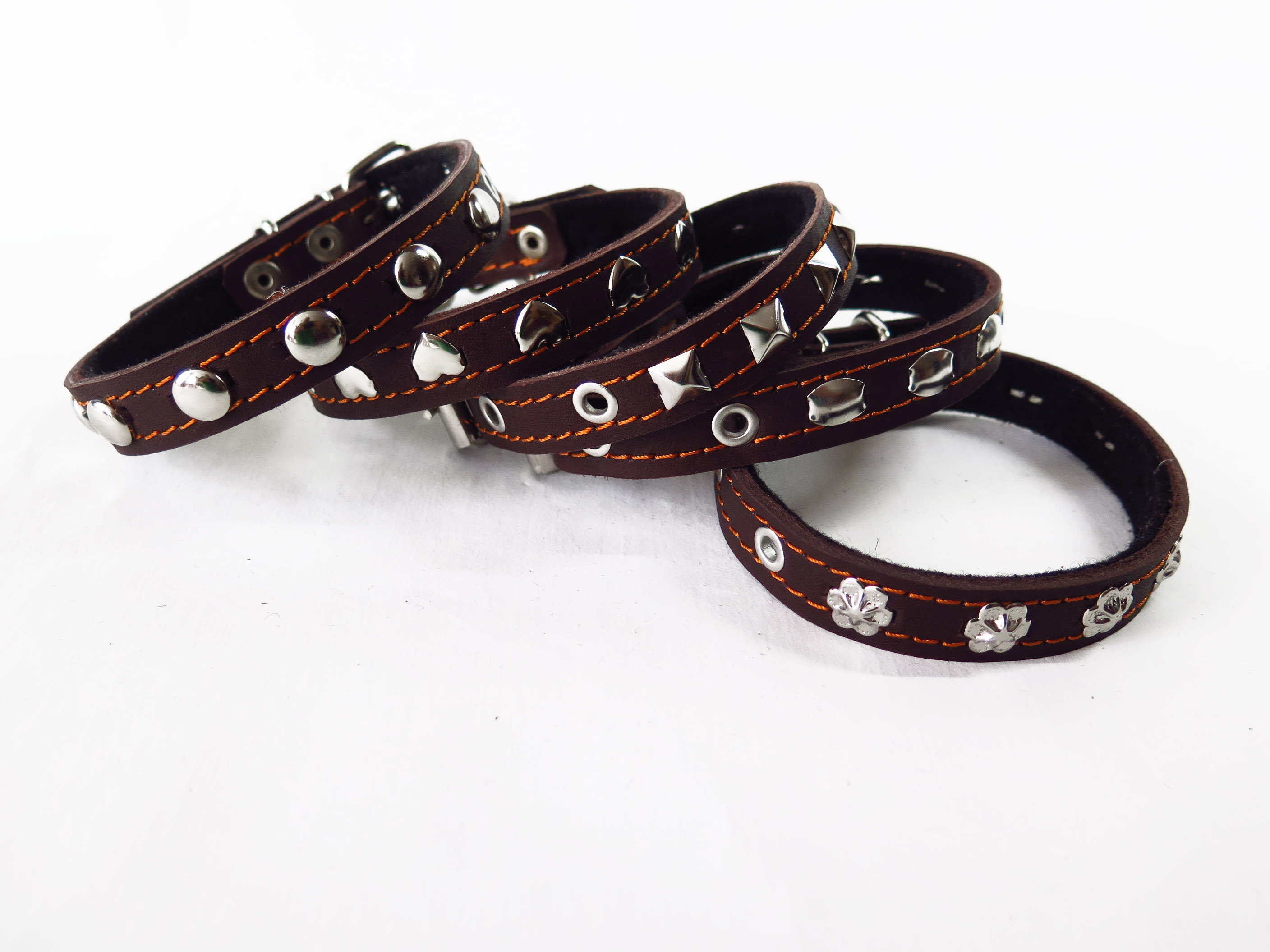 ошейник кожаный с украшением, ширина 20 мм, длина 42 см