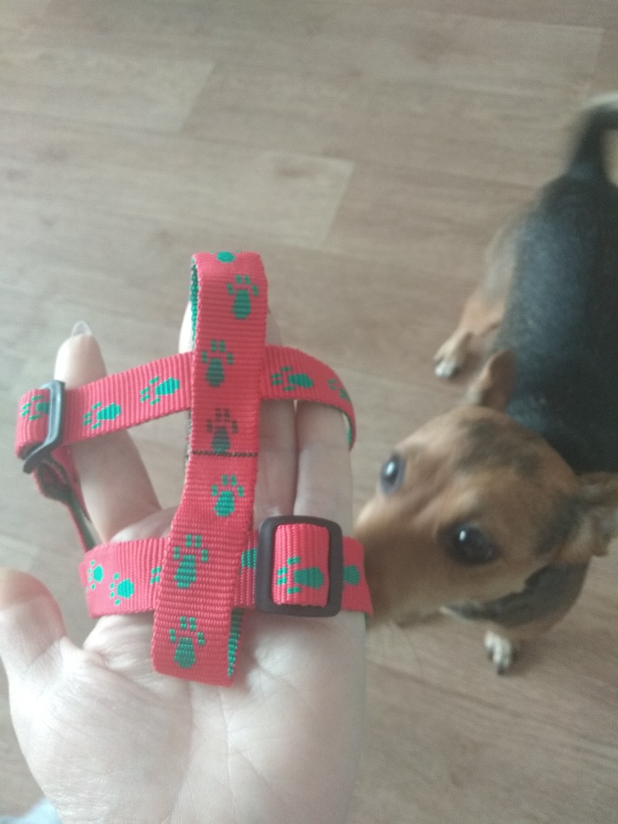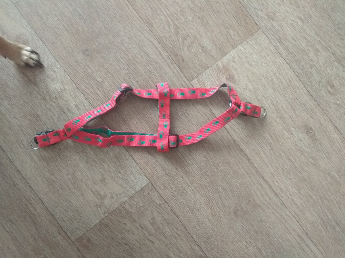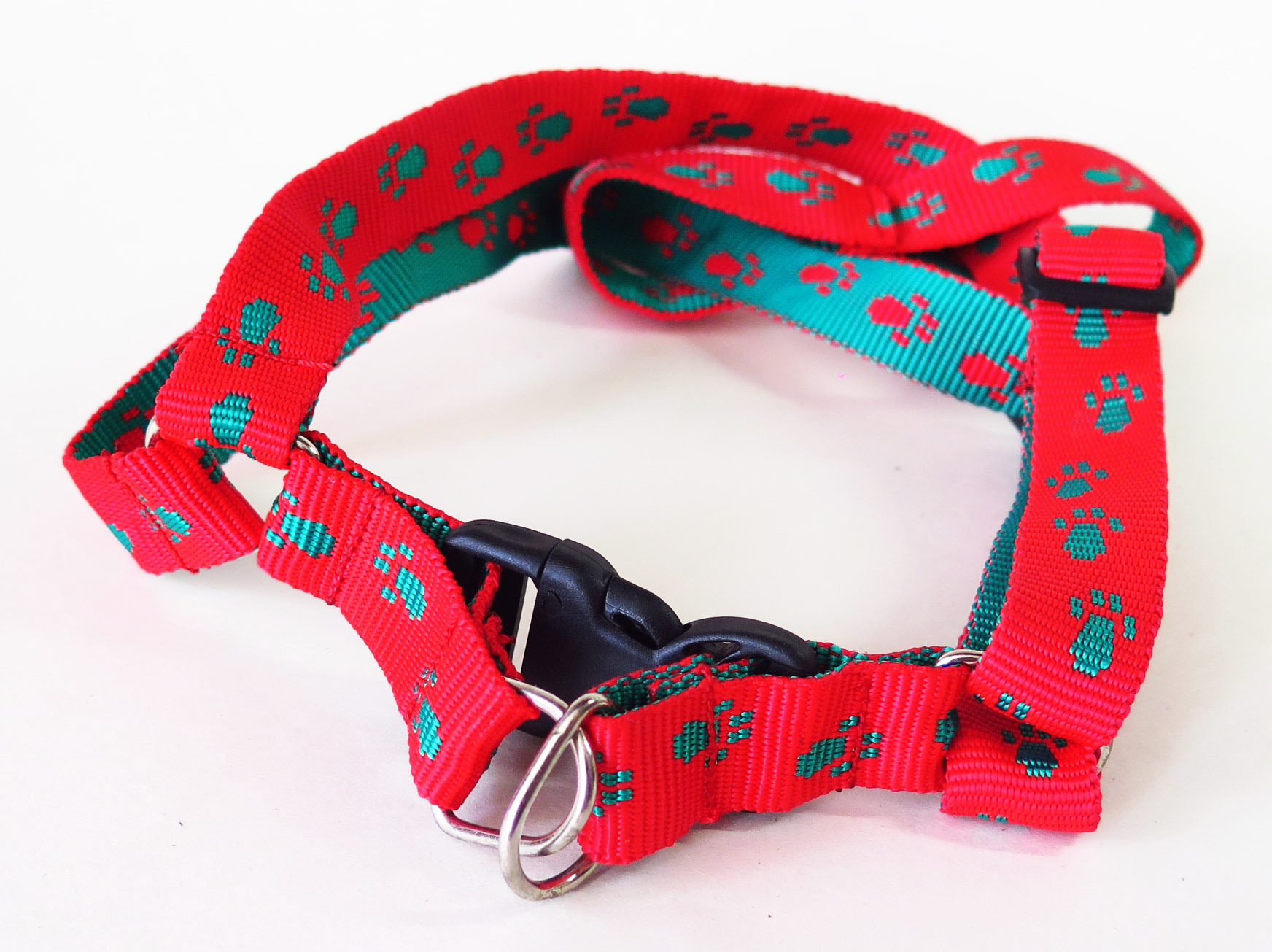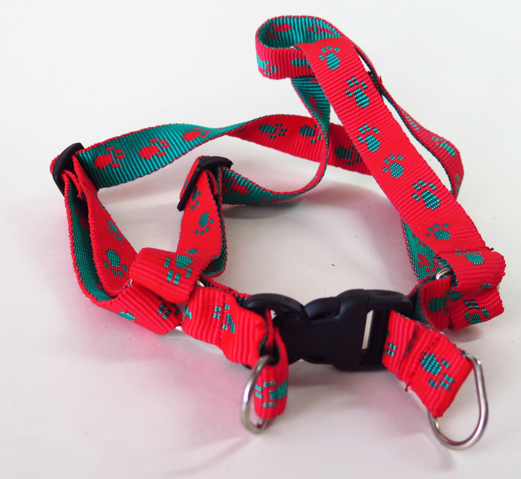 Шлейка капроновая для собак, ОГ 35-50 см, ширина 20 мм, красно-зеленая, лапки