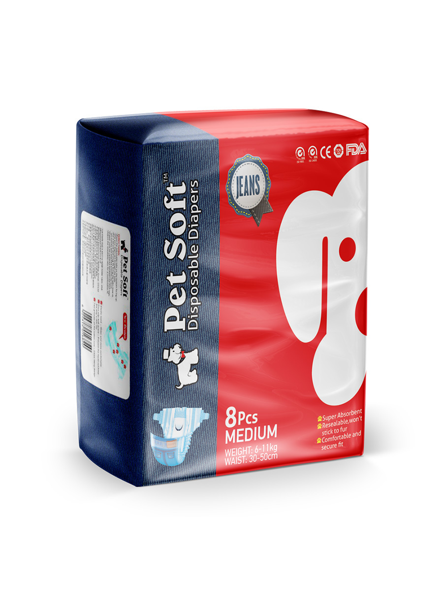 Одноразовые впитывающие подгузники для животных Pet Soft jean diapers размер M 8 штук