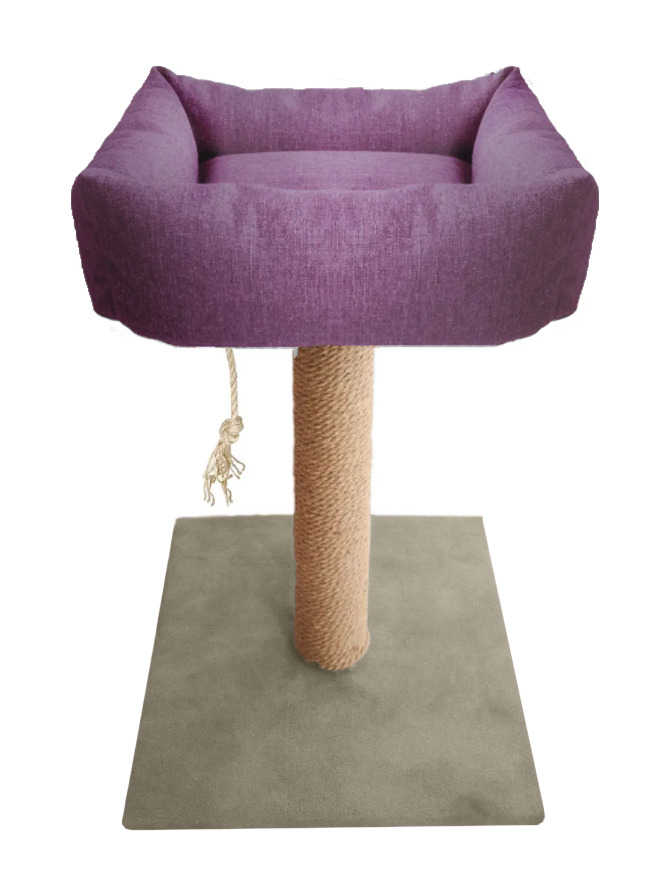 Когтеточка для кошек столбик с мягким лежаком 35*35*60 см Баклажановый Серый