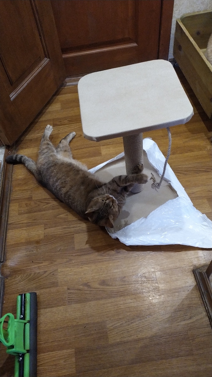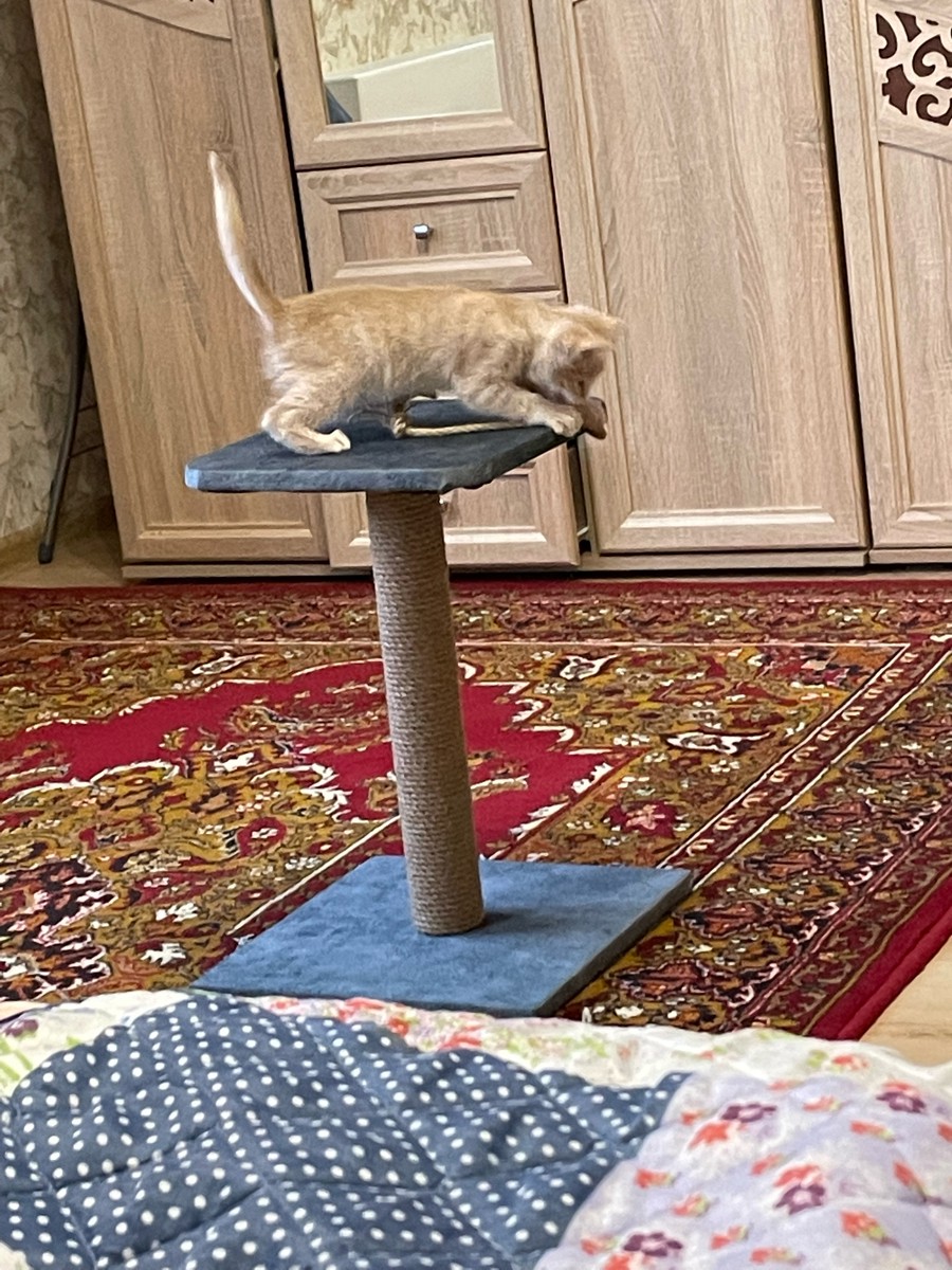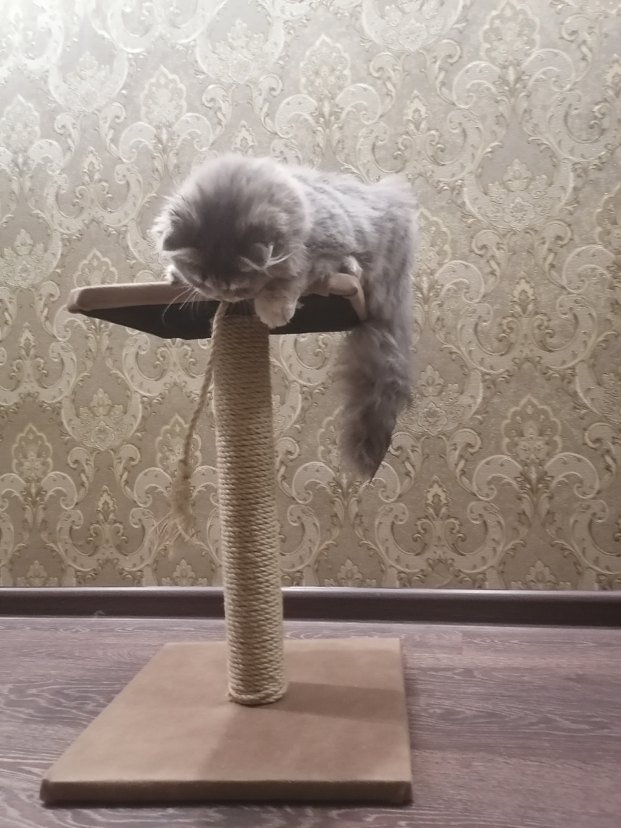 Когтеточка для кошек Джут столбик с лежанкой 35*35*50см PetCraft Светло-коричневый