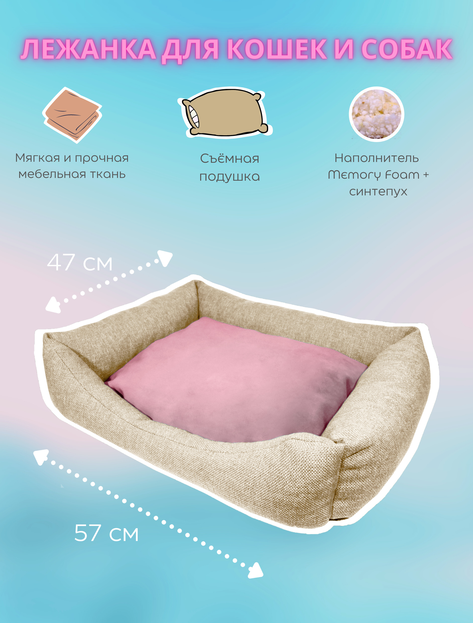 Лежанка для кошек и собак, Pet.Craft. 42х42 см. Бежевый. Серо-бежевый.