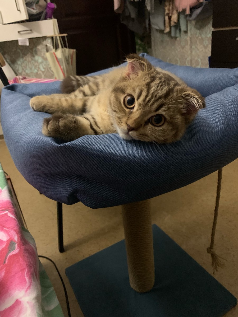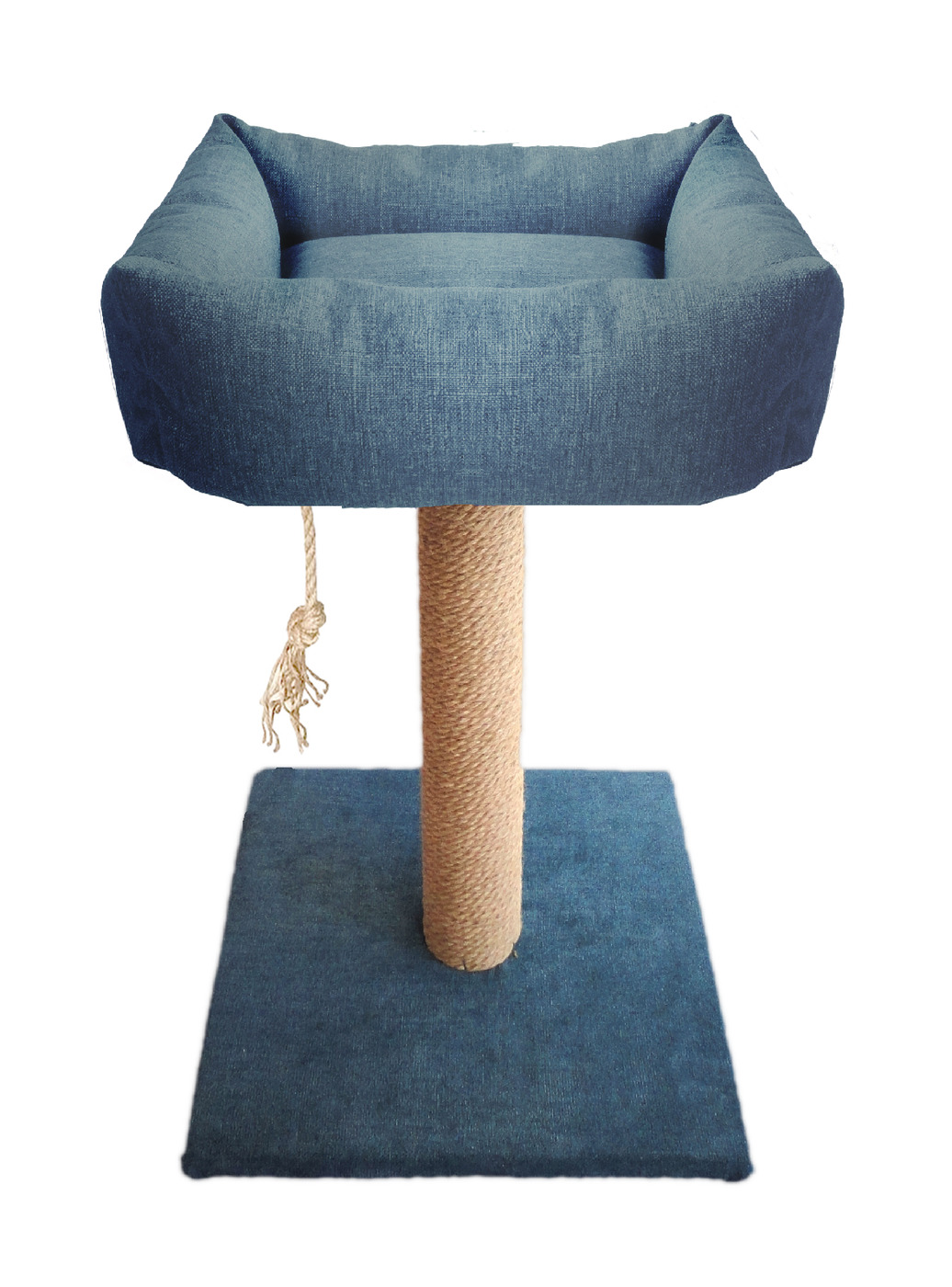 Когтеточка для кошек столбик с мягким лежаком 35*35*60 см Синий Синий