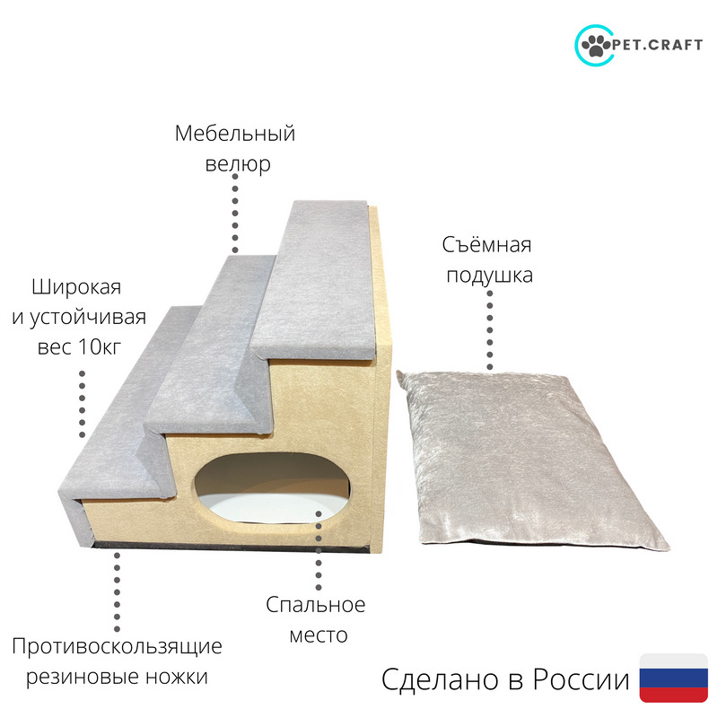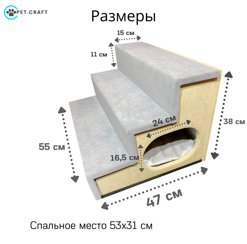 Лесенка домик когтеточка лежанка для кошек собак Pet.Craft 55*47*38 см Серый Бежевый