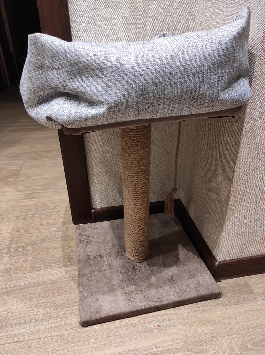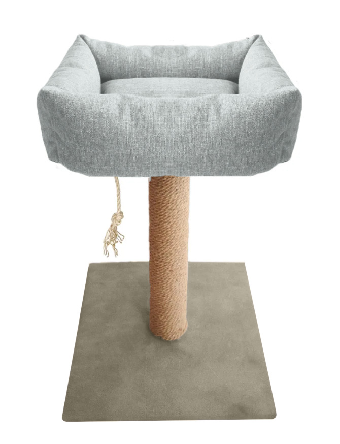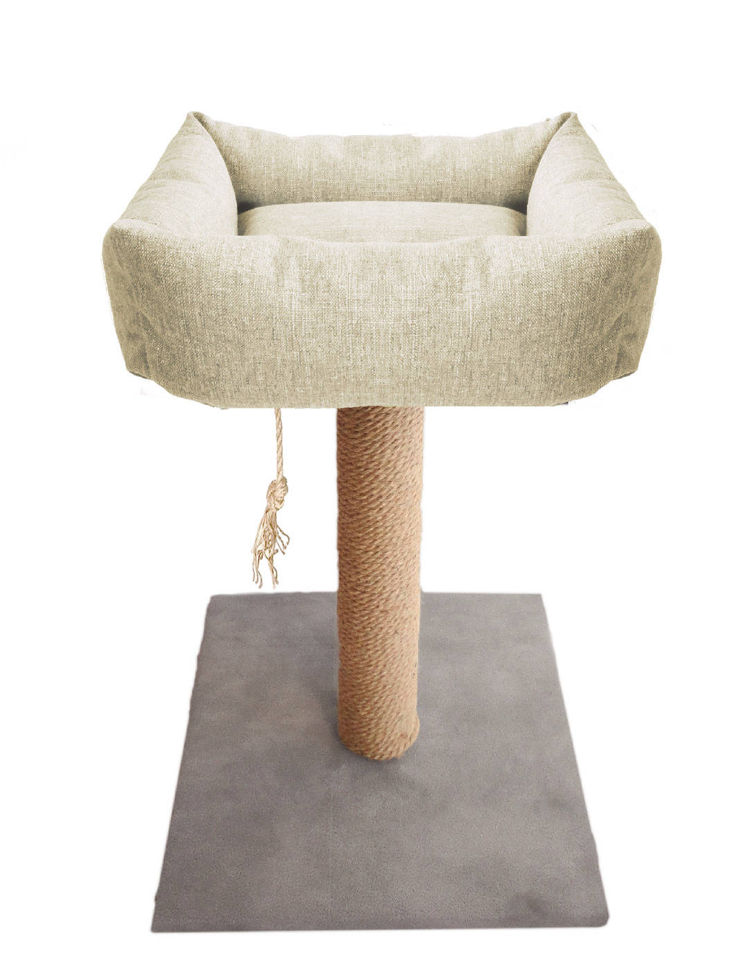 Когтеточка для кошек столбик с мягким лежаком 35*35*60 см Светло-бежевый Серый