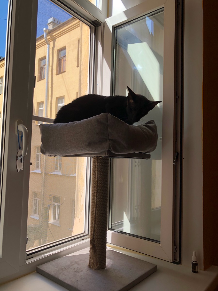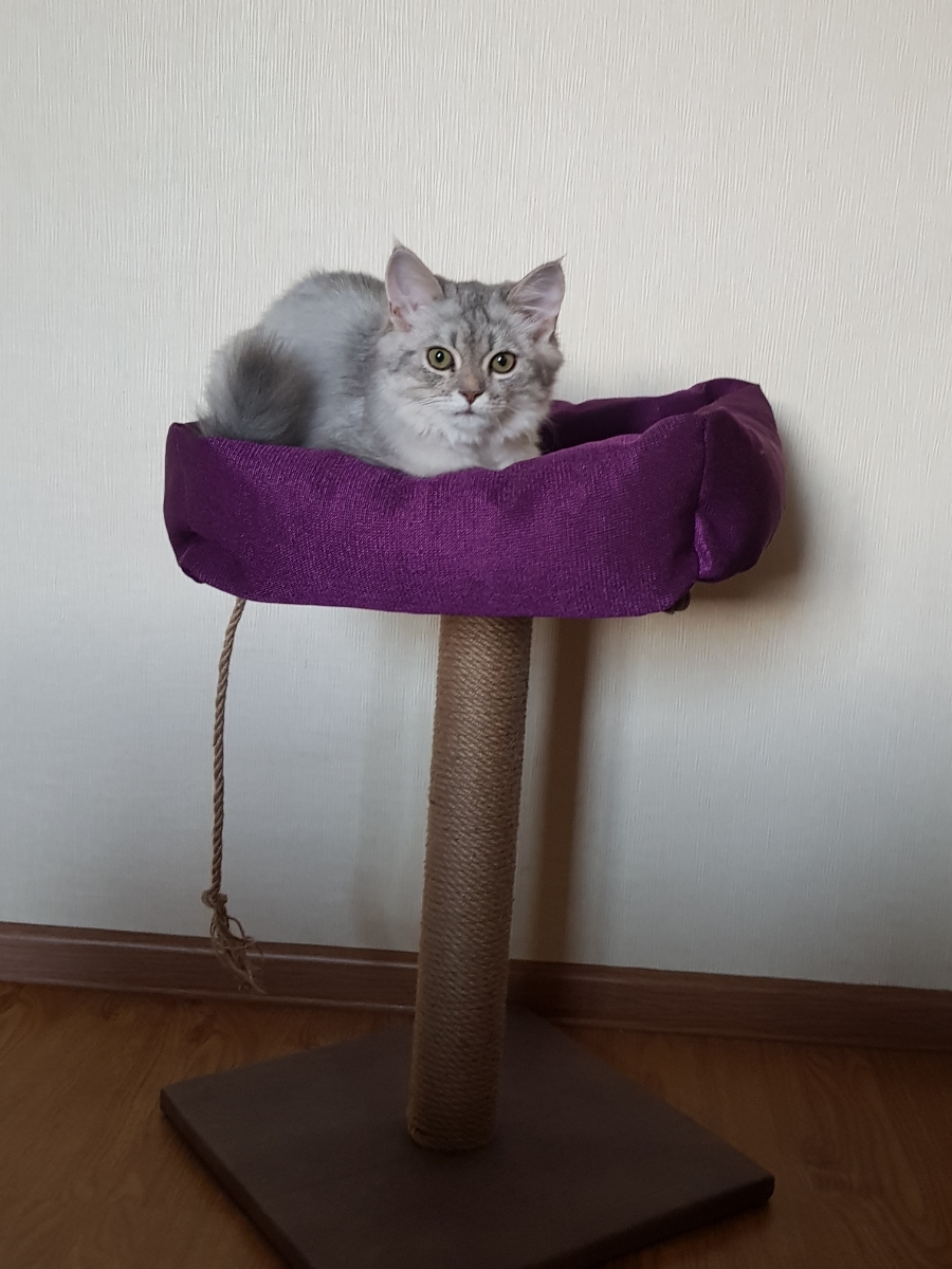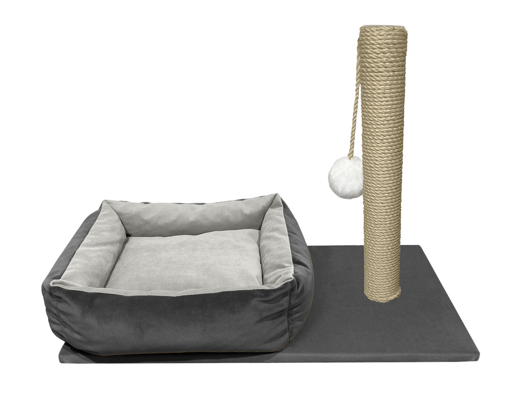 Когтеточка для кошек столбик с мягким лежаком КСЛ 63*35*46 см Серый Темно-серый-серый