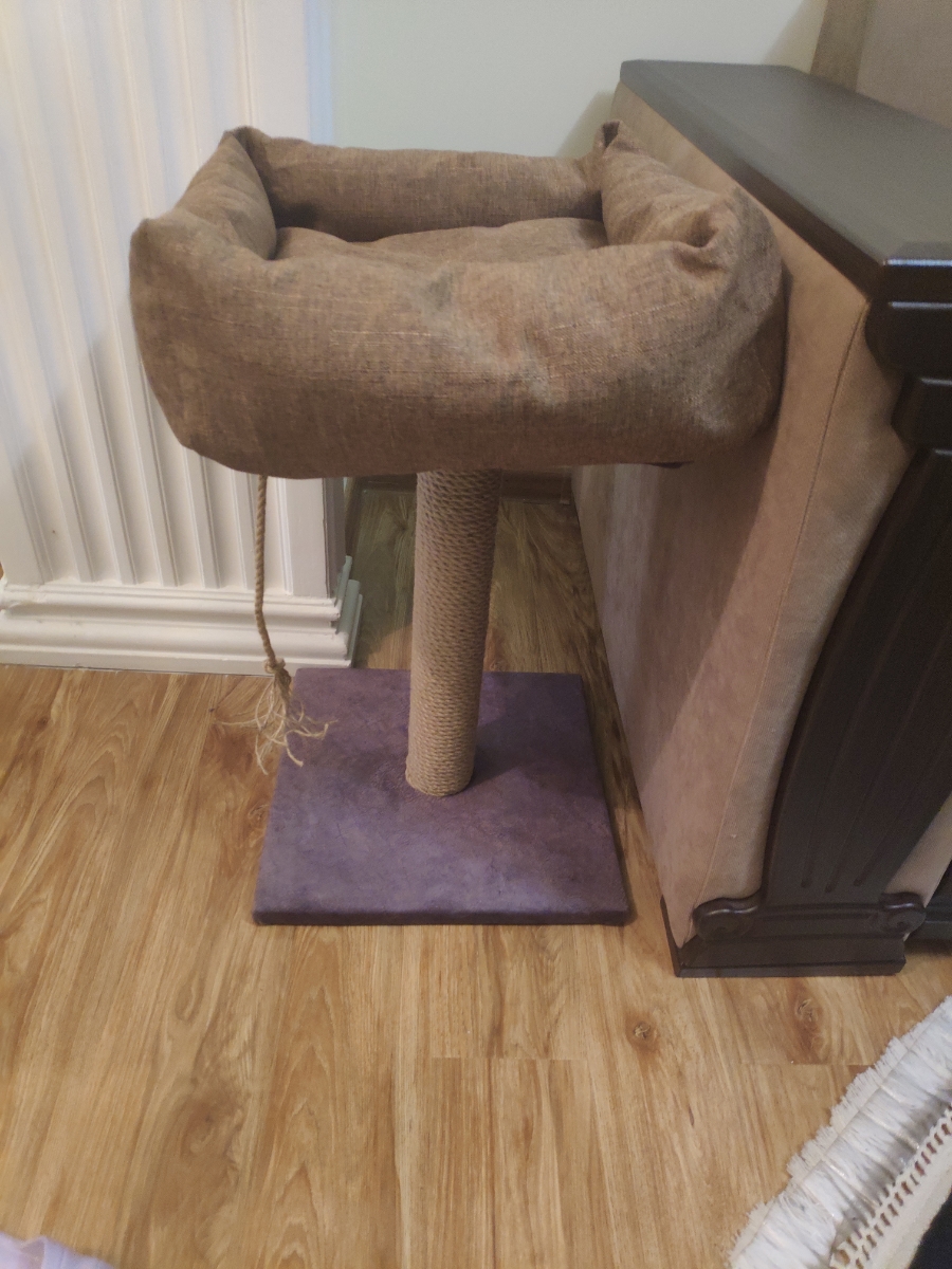 Когтеточка для кошек столбик с мягким лежаком 35*35*60 см Серо-коричневый Бежевый