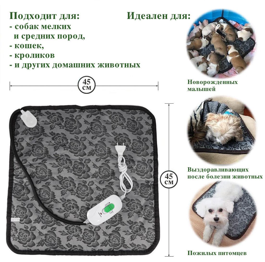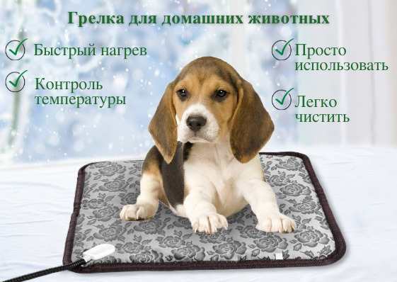 Грелка для домашних животных электрическая водонепроницаемая 45*45 см, температура нагрева 30-50 С