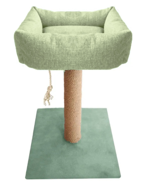 Когтеточка для кошек столбик с мягким лежаком 35*35*60 см Мятный