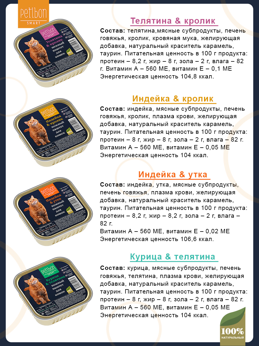 Корм консервированный для кошек Petibon Smart "Паштет с индейкой и кроликом", 100 г х 24 шт