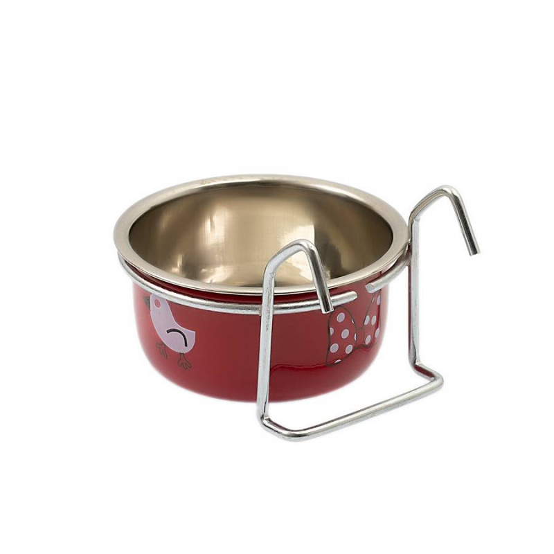 Petmax Миска для птиц металлическая красная с крепежом 300мл