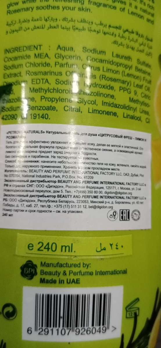 Petrova гель для душа "Витаминный коктейль - грейпфрут и арбуз", 240 мл