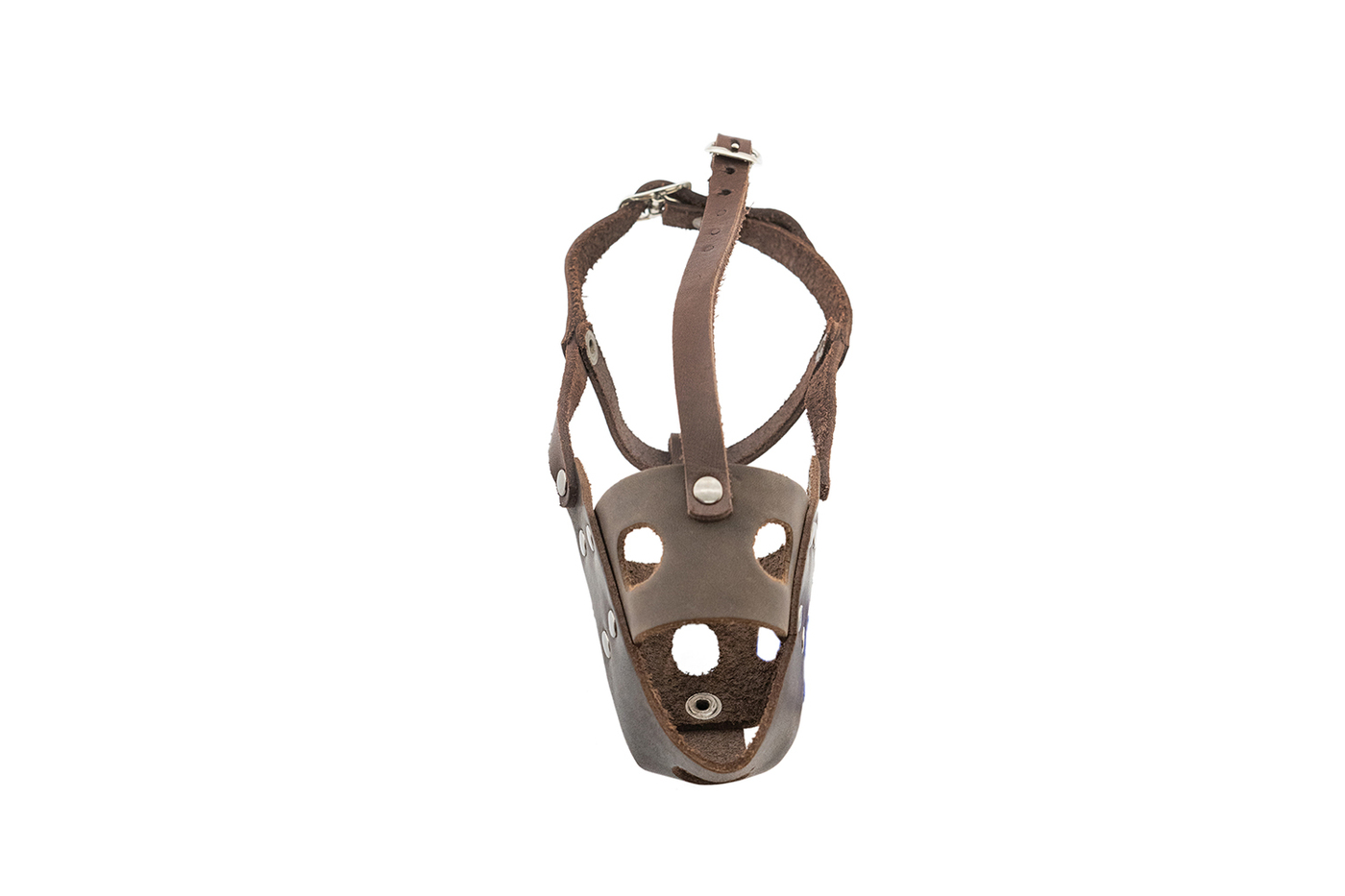 Намордник кожаный "PetTails", вырубной № 0, коричневый, с застёжкой "ошейником" (Йоркшир,Чихуахуа)