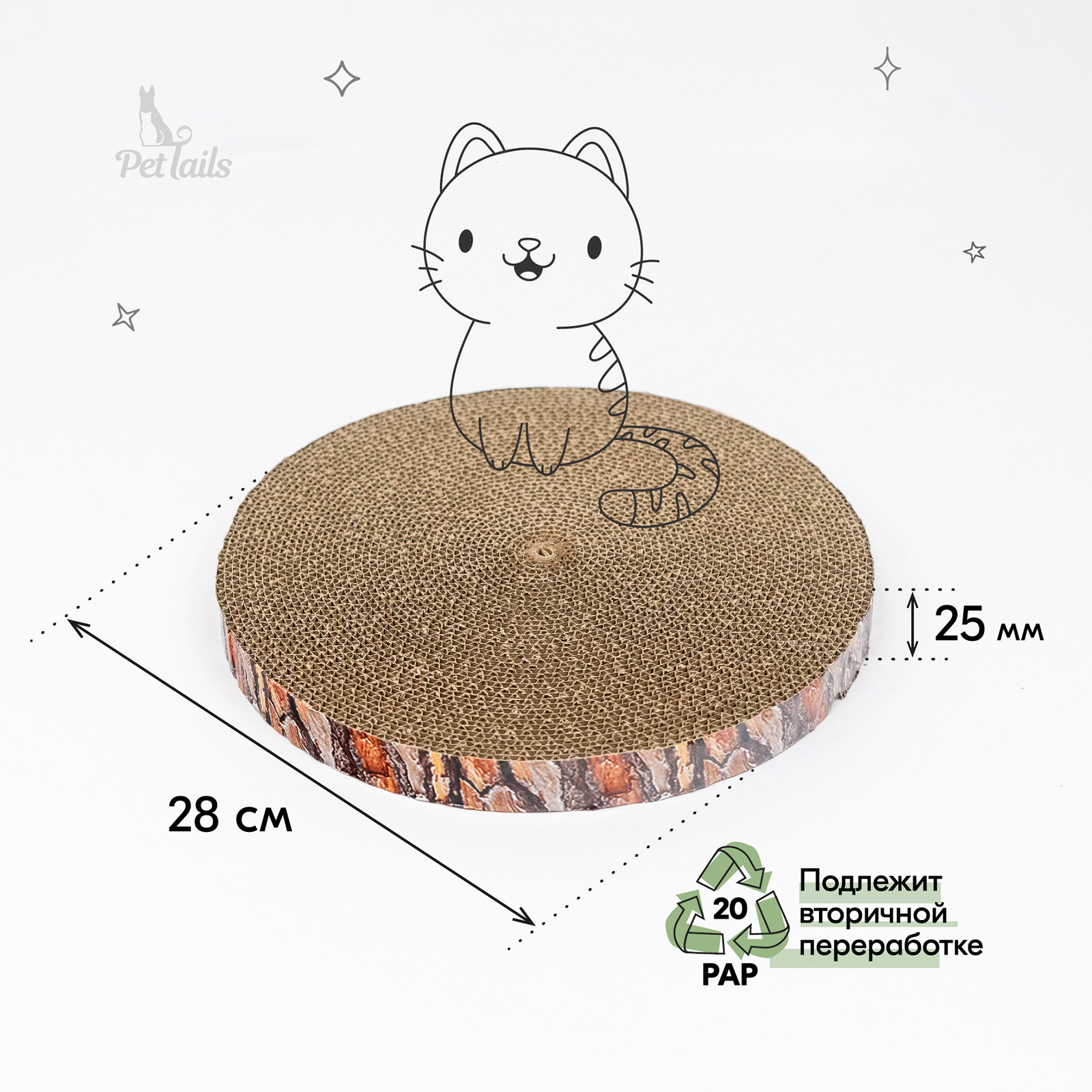 Когтеточка картонная PetTails модель "ПЕНЬ СОСНОВЫЙ" малый h25мм, D28см с пропиткой