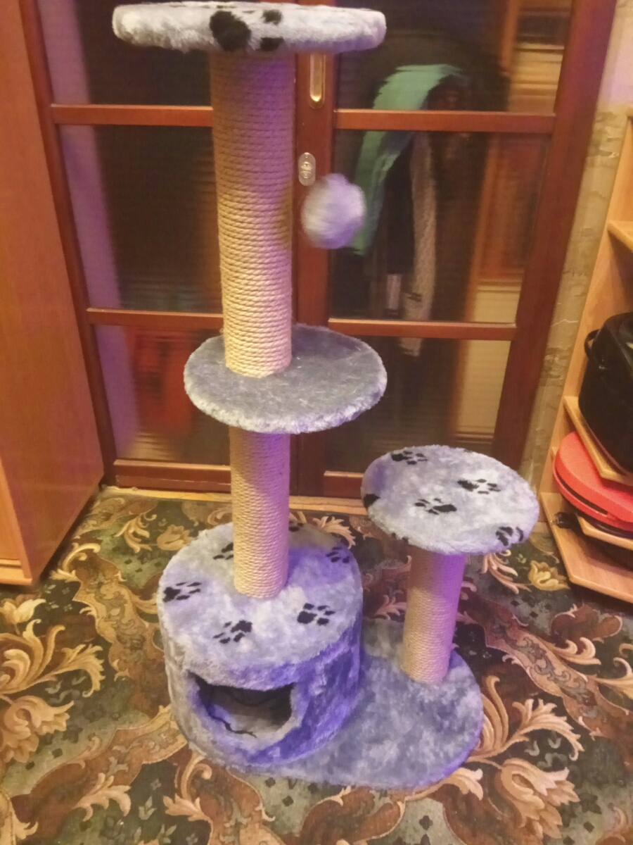Когтеточка домик для кошек PetTails, серия "Новый Уровень" серый квадратный трех уровневый, толстые столбы 65 х 36 х 112. Уцененный товар