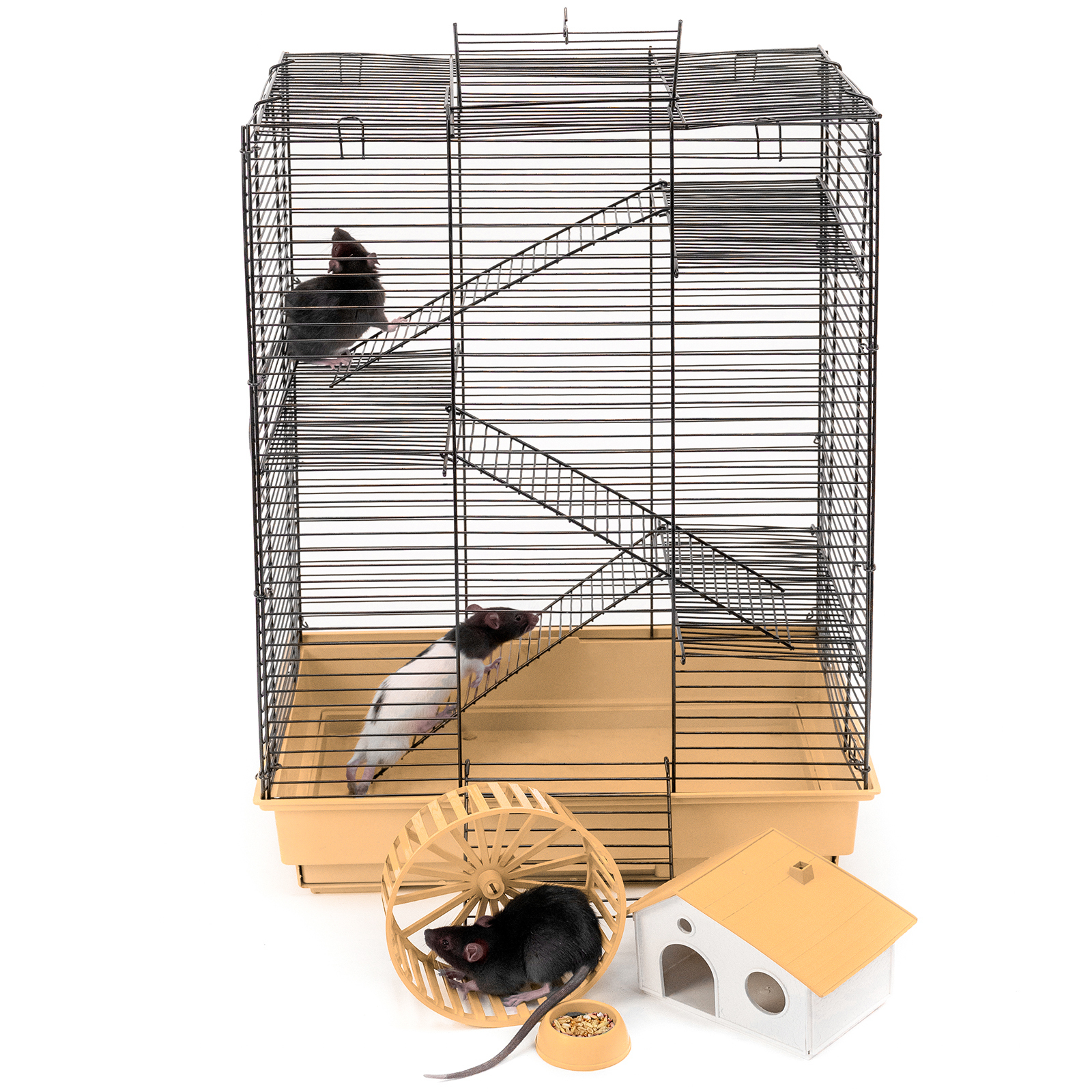 Клетка для грызунов, для хомяков PetTails, №4 большая, разборная, шаг прута 10,5мм,42х30х59см, 3 этажа (домик, колесо, миска), бежевая