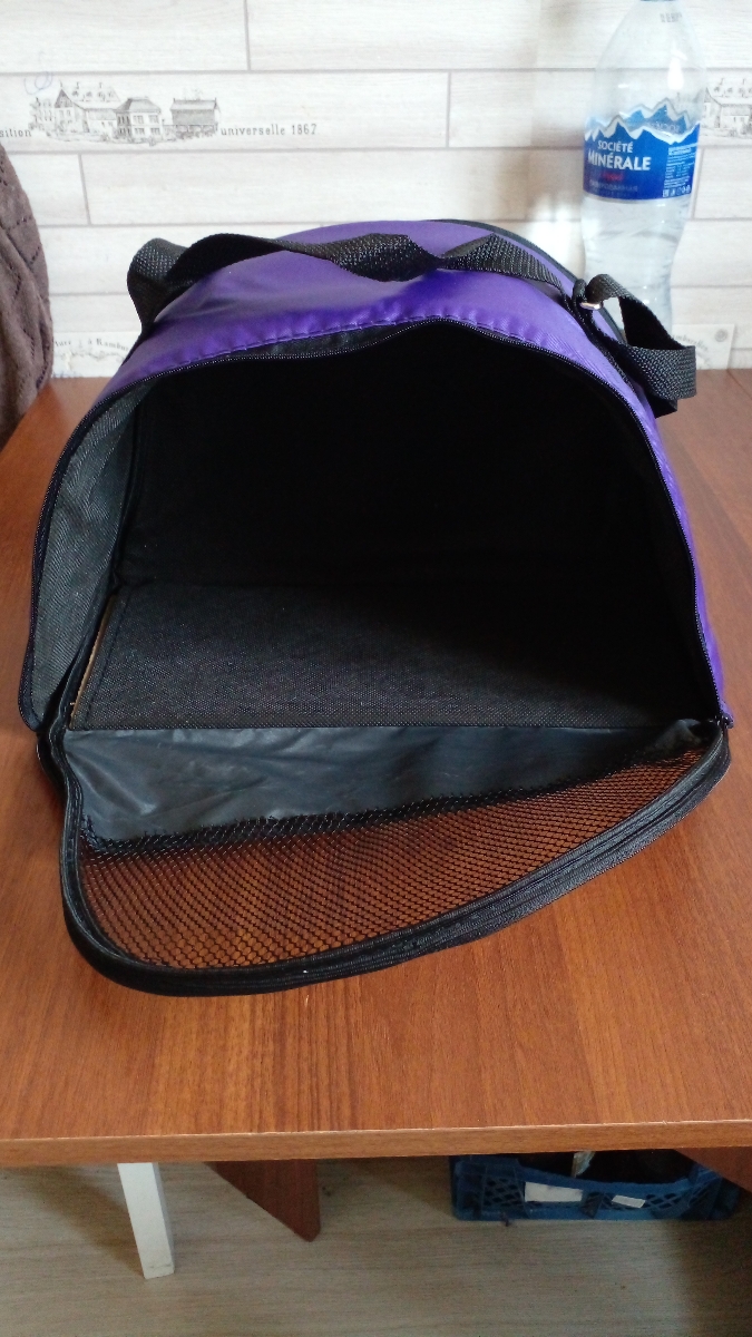 Переноска сумка Полусфера-Раскладная "PetTails" №1 с карманом и ремнем 40 х 20 х 27см, фиолетовая