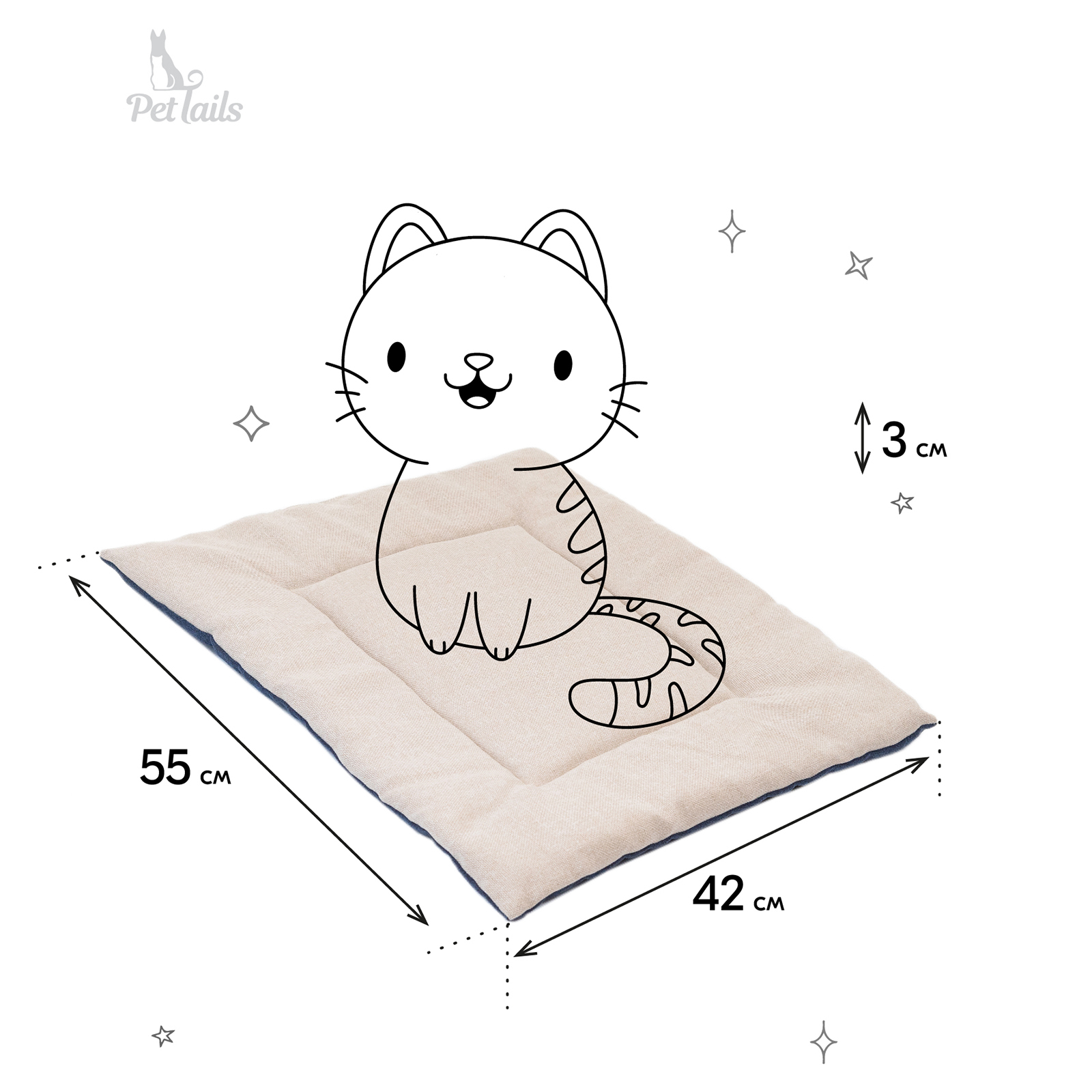 Подстилка прямоугольная стеганая PetTails, серия "Море" 55*42*3 см ( рогожка, периотек) бежевая