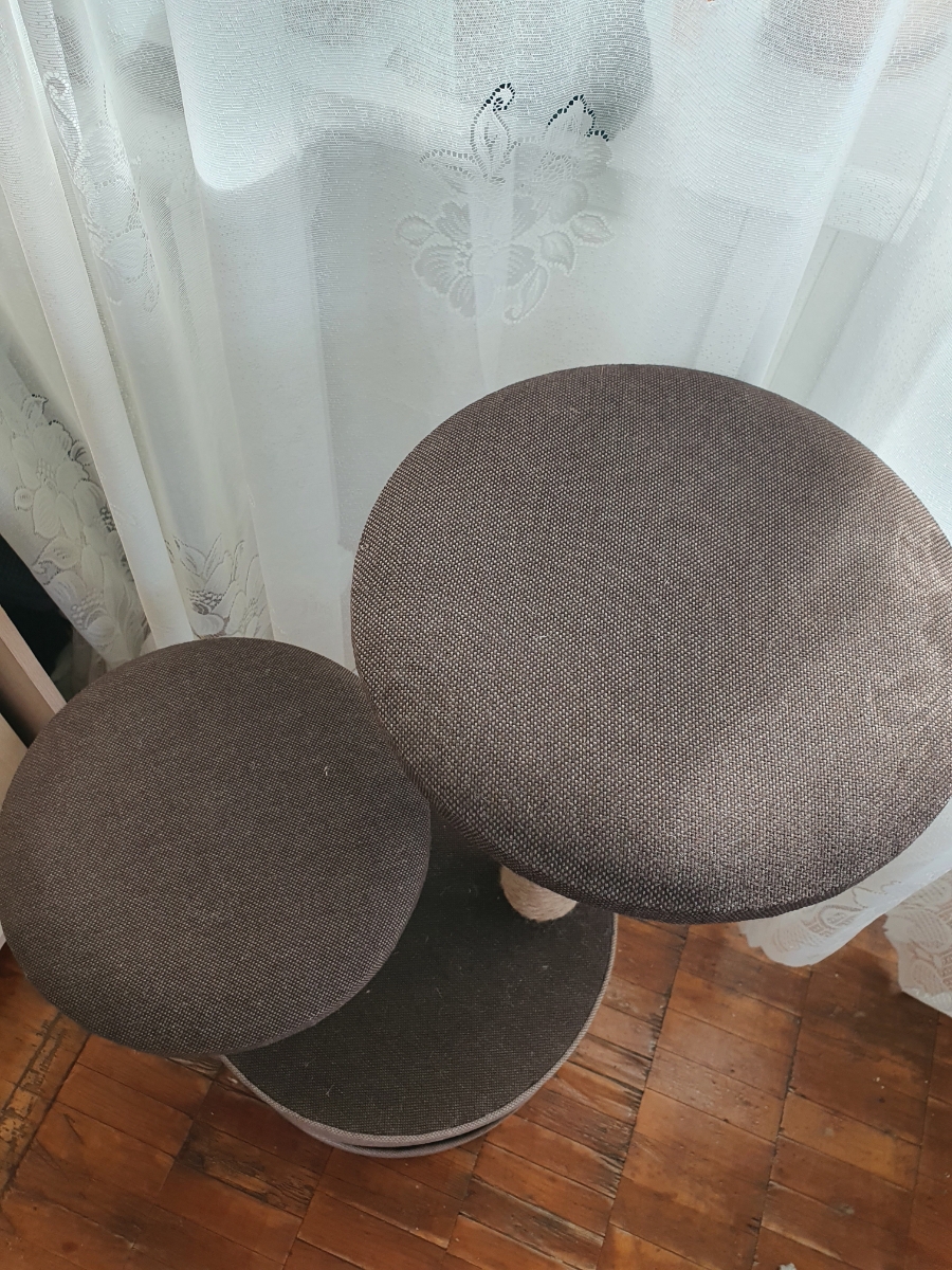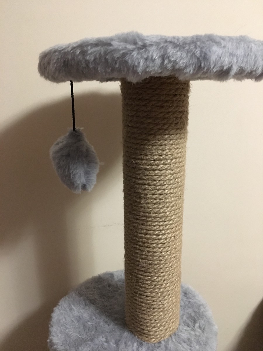 Когтеточка PetTails столбик на подставке 35 х 35 х 50см (мех игр.,столбик джут), коричневая