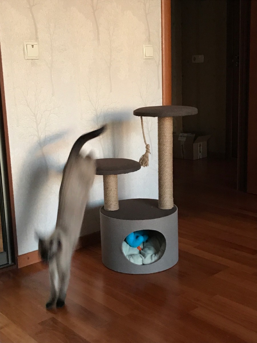 Когтеточка-комплекс PetTails многоуровневый, с домиком 65 х 65 х 130см (экокожа) бежевый