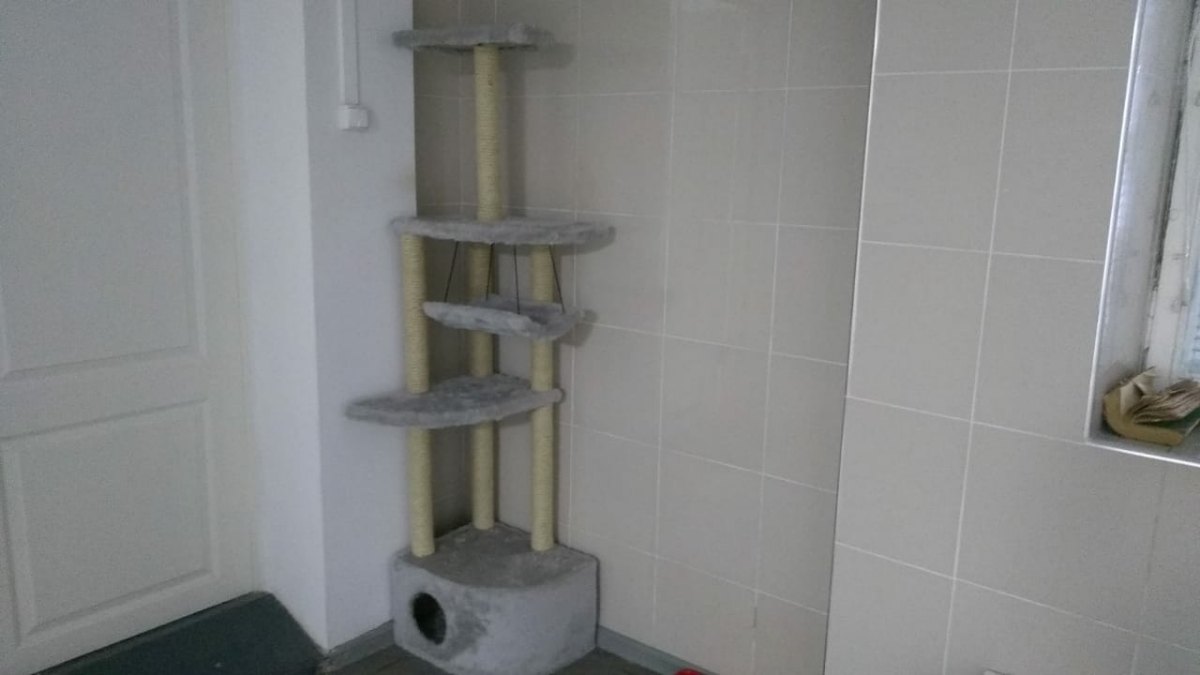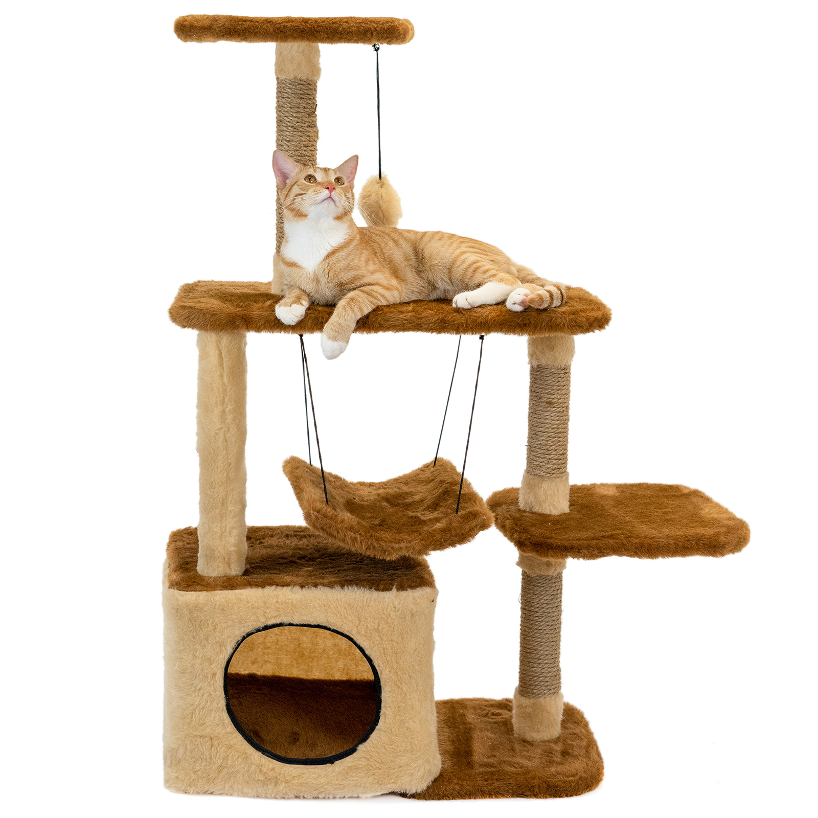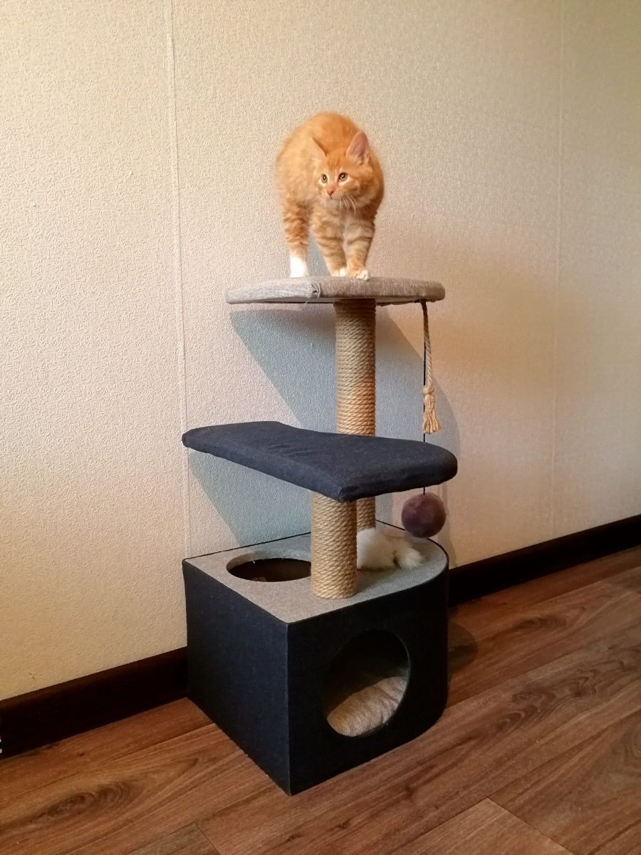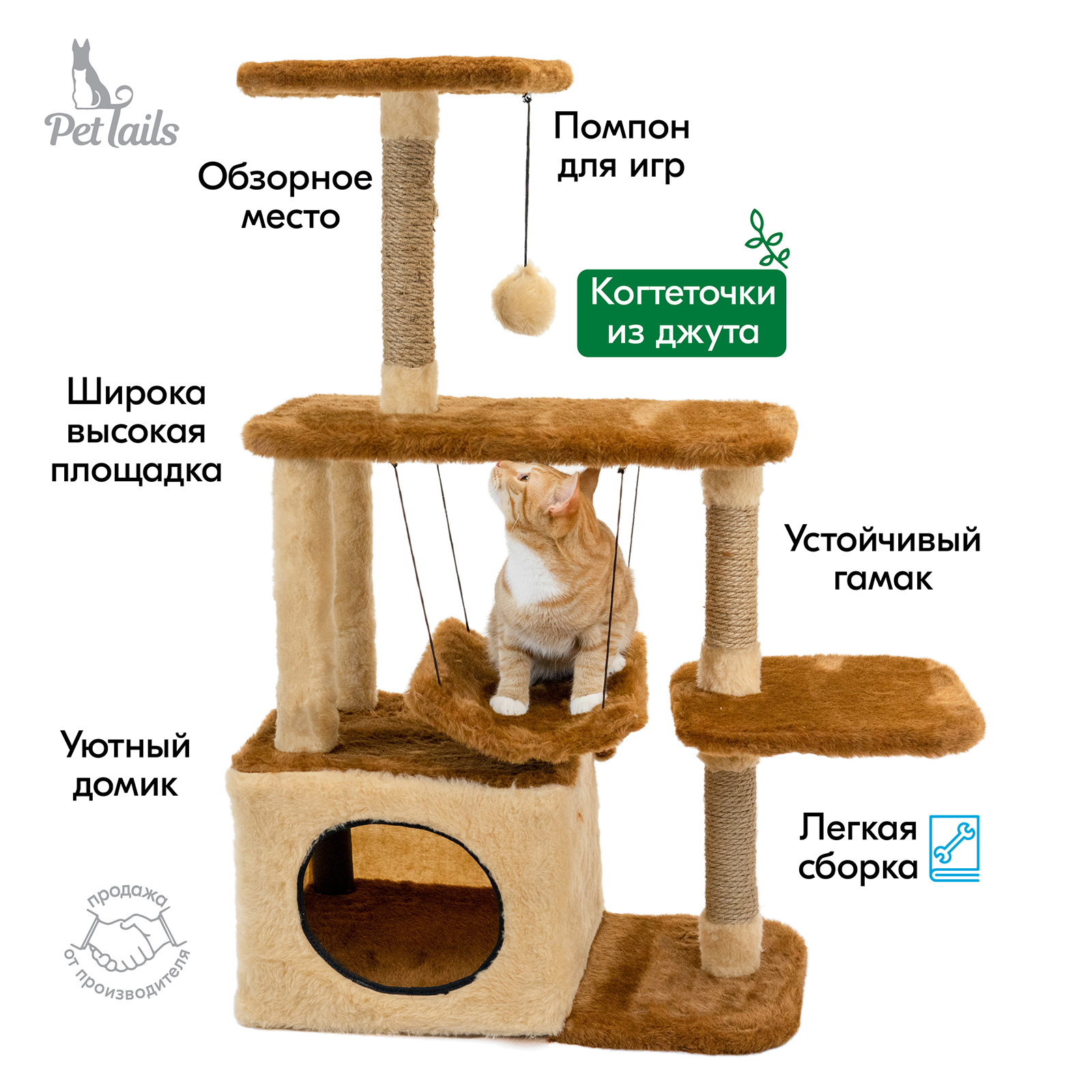 Когтеточка домик "PetTails" МАРЧЕЛЛО разборный с гамаком, 33*76*h105см (мех, джут) бежевый