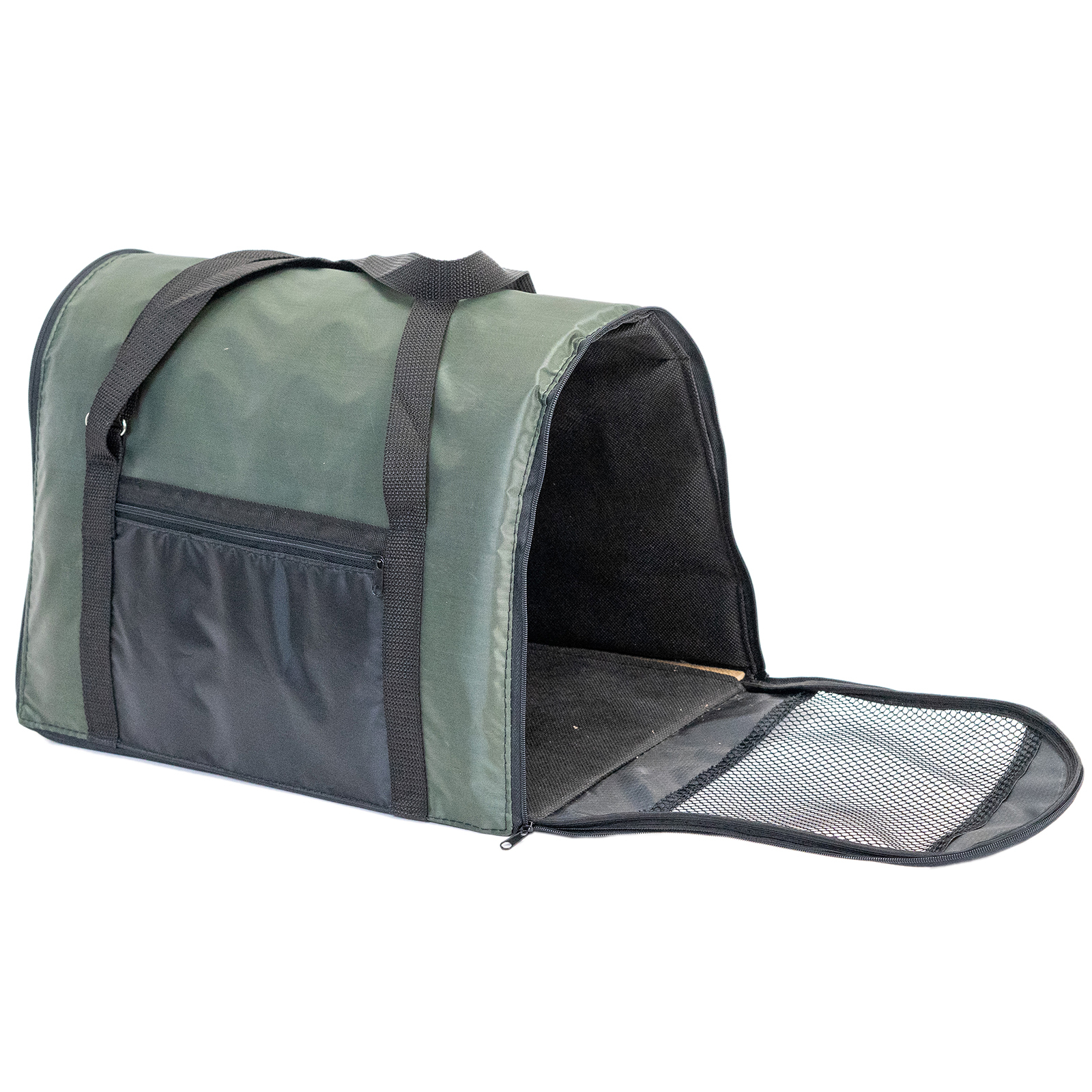 Переноска сумка Полусфера-Раскладная "PetTails" №1 с карманом и ремнем 40 х 20 х 27см, зелёная