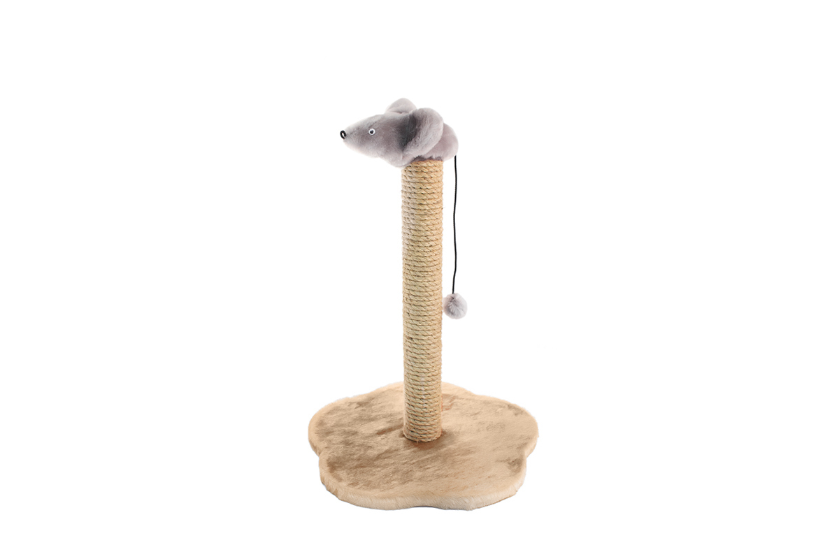 Когтеточка PetTails столбик с мышью 35 х 35 х 55см (столбик джут), бежевая