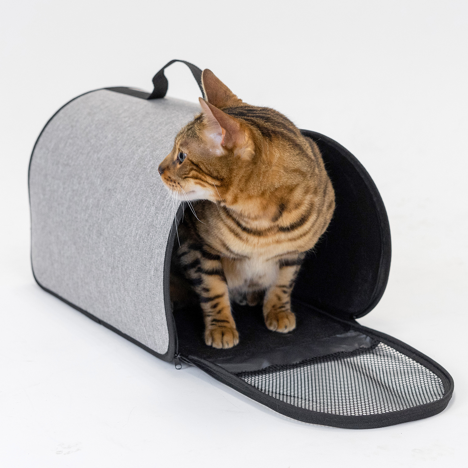 Переноска сумка жёсткая "PetTails" №4 51*29*29 (рогожка, пластик) серая