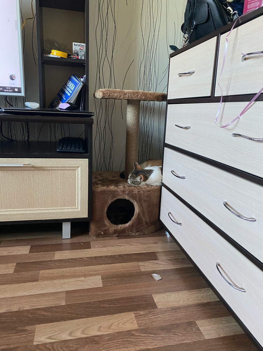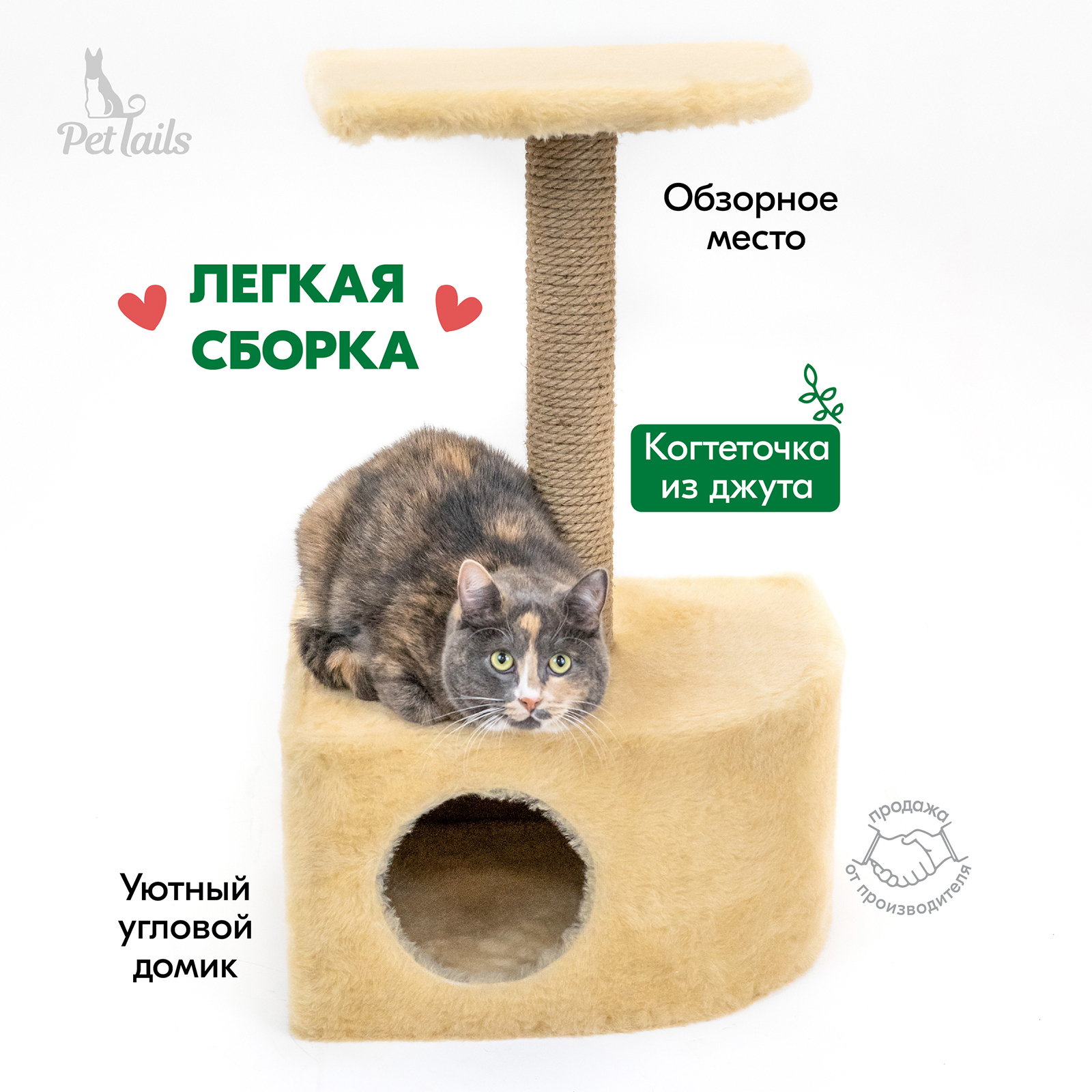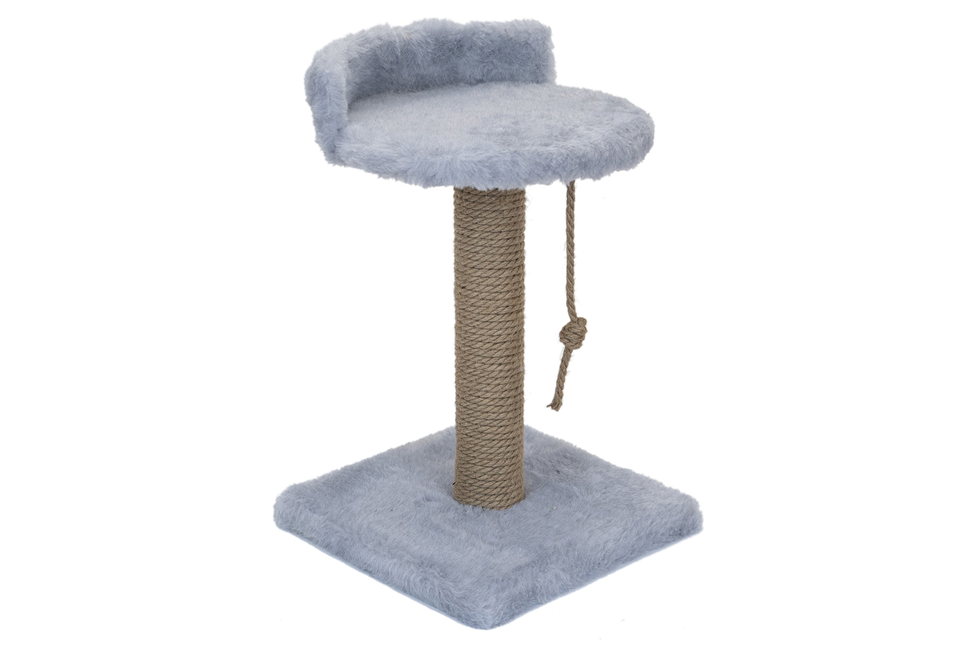 Когтеточка столбик с лежанкой малая PetTails (мех, джут) 30*30*h50см, серая